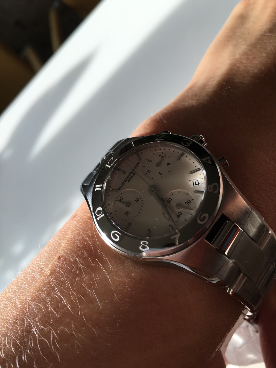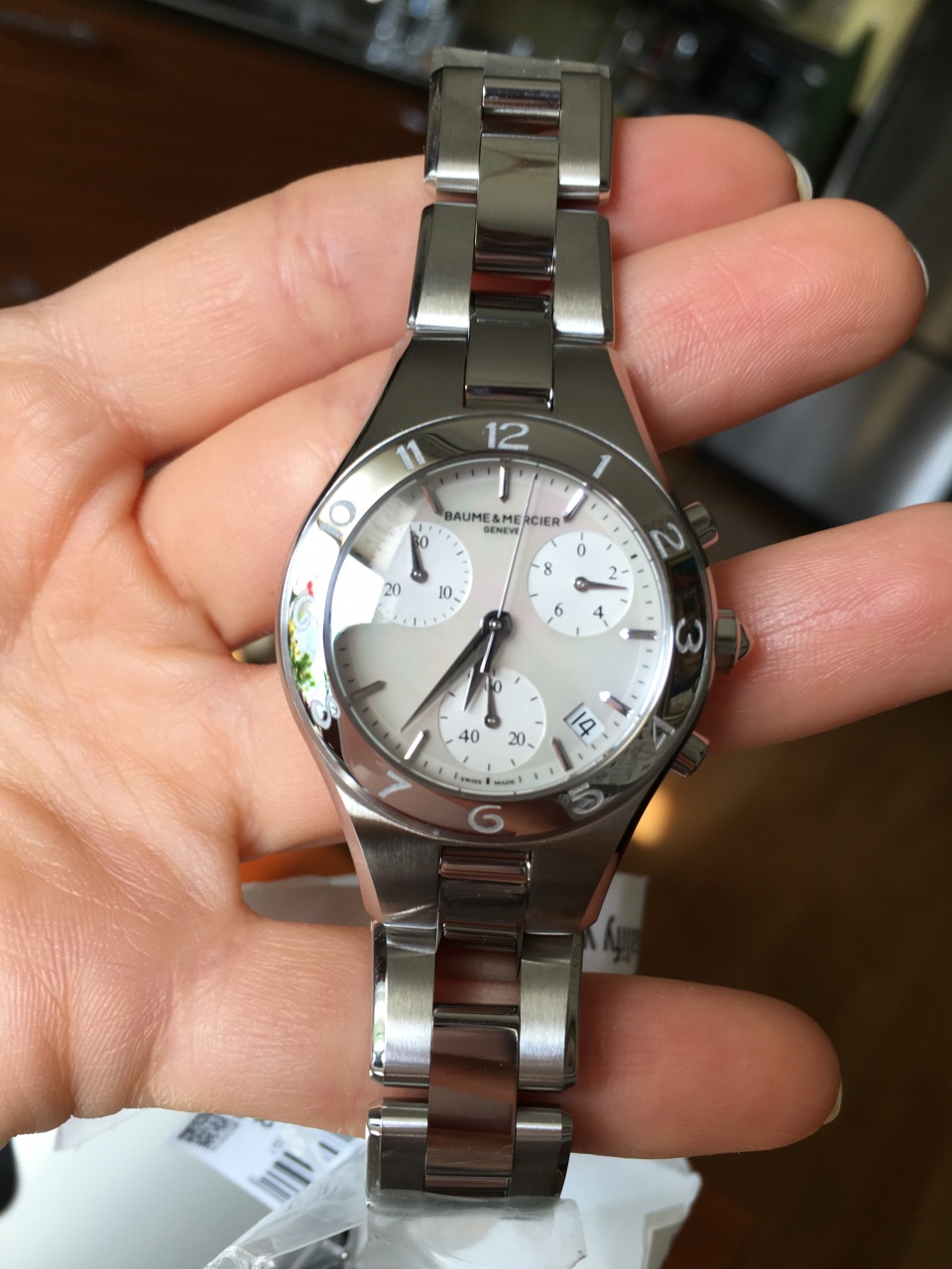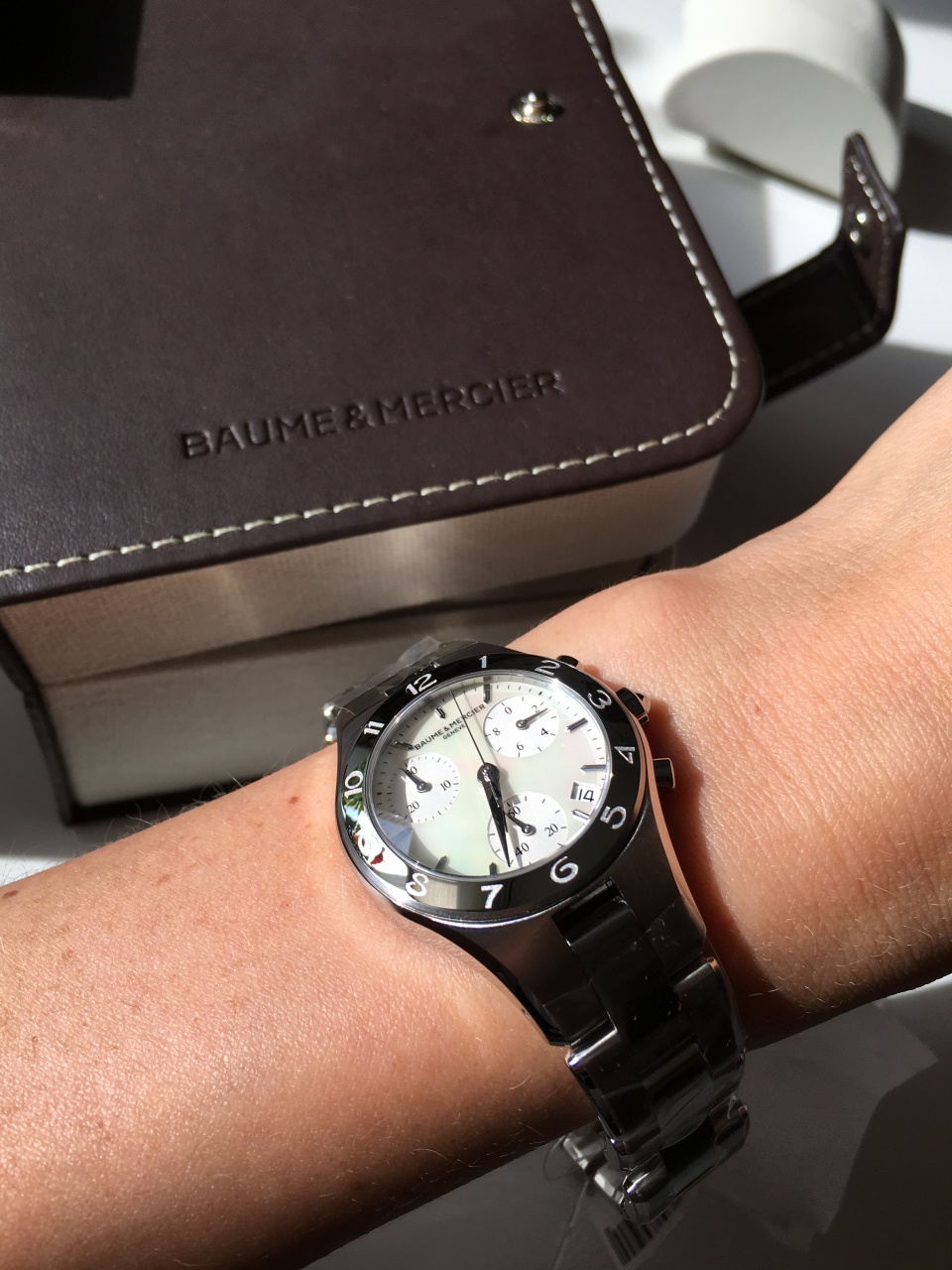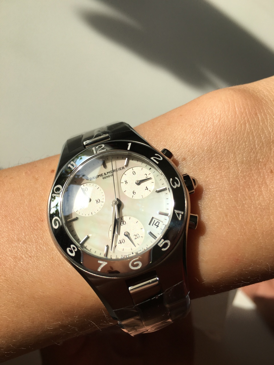 * Женские * Baume & Mercier Linea 10012 Chronograph * Ø 32 * Перламутр * Браслет + Ремень *