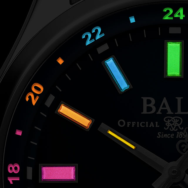 39 micro gas tubes on hour, minute, second and GMT hands, dial for night reading capability