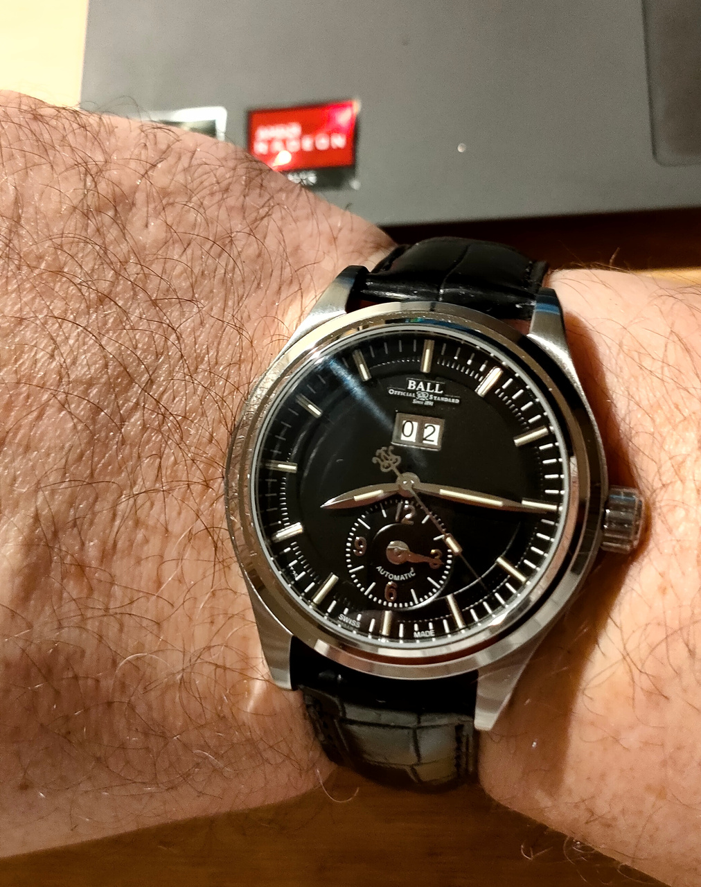 Первые впечатления уже не в салоне: не смотря на то, что тяжелые, на руке практически не заметны. Очень читаемый цифер. Черные -)). Браслет частично сатинирован, частично полирован, что на черном фоне смотрится здорово. Но небольшой камень в сторону Ball. Браслет немного игрушечный. Не производит впечатления металлического. Схож по восприятию с браслетами ГС, те тоже производят легковесное впечатление. Но не считаю это проблемой для часов в данной ценовой категории. На лето закажу к ним пару ремней.