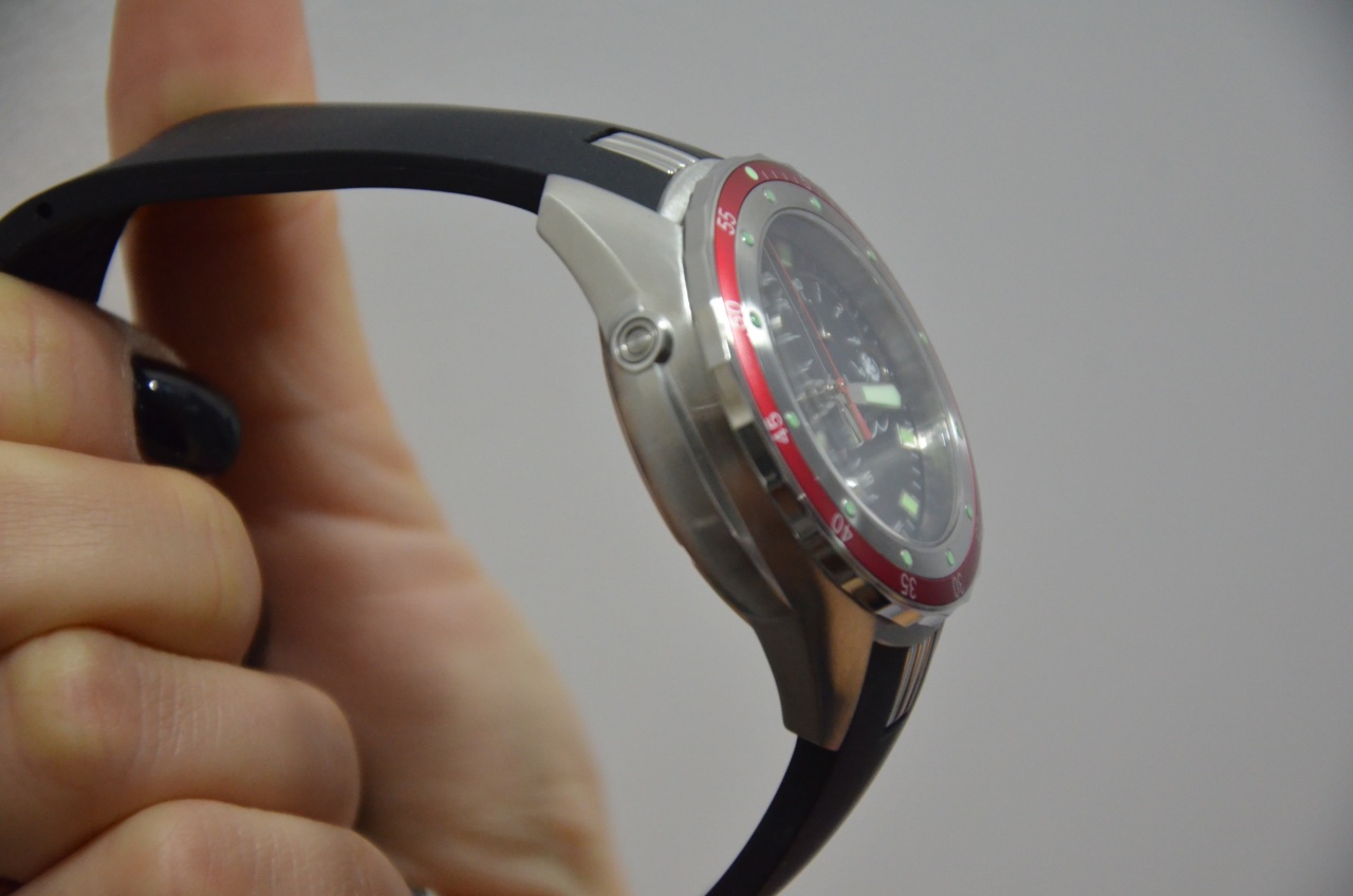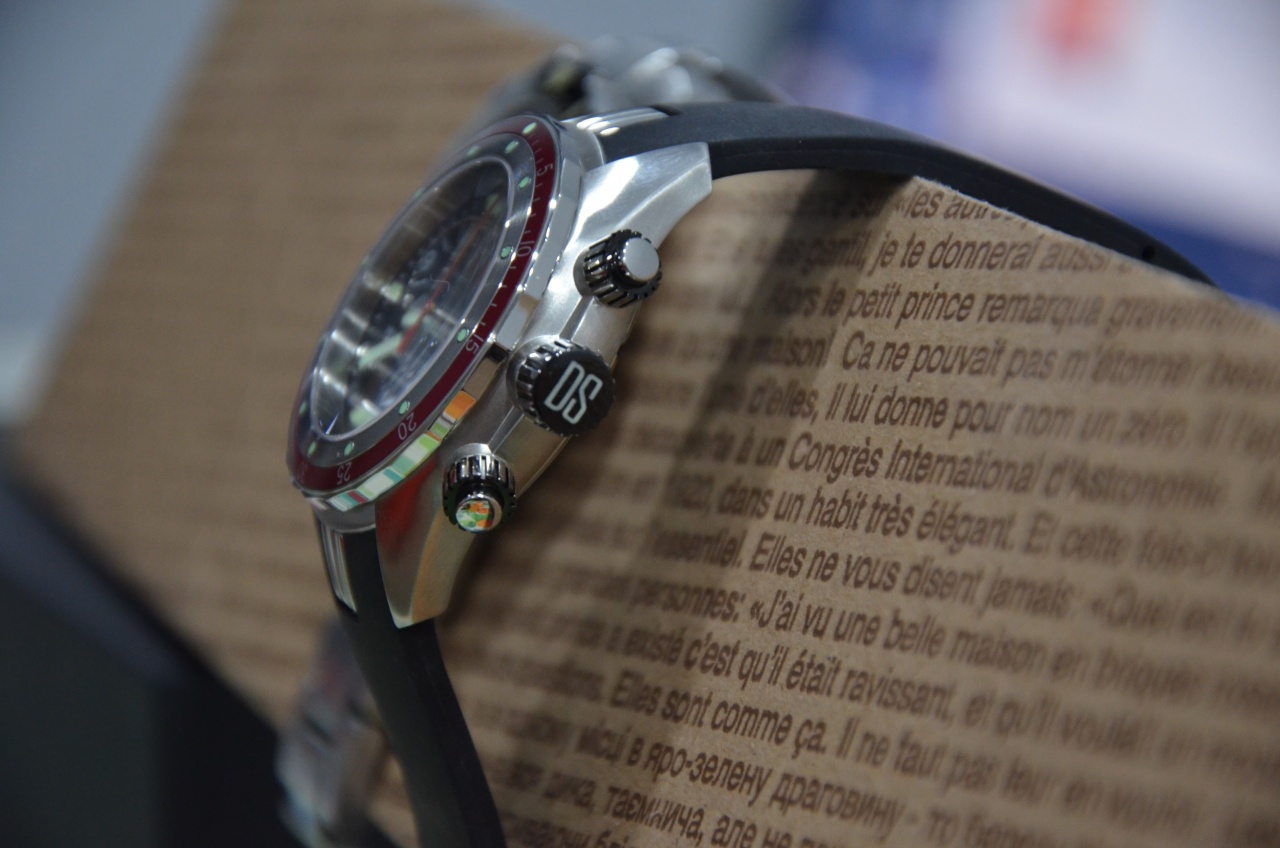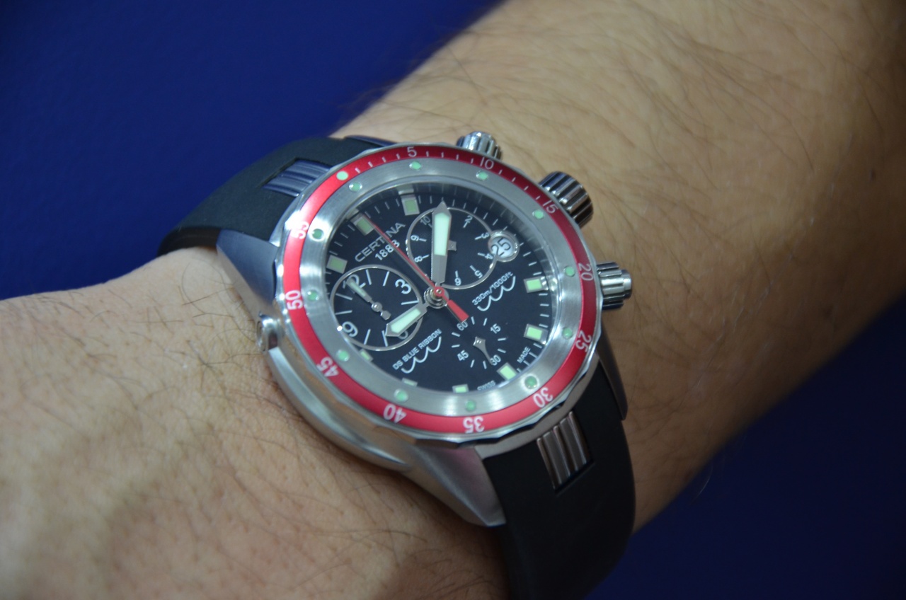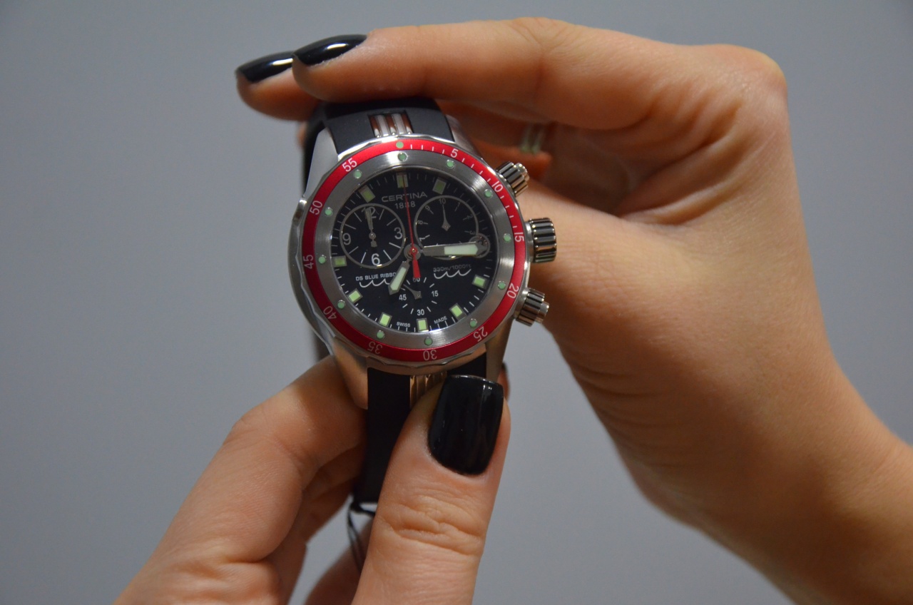 Blue Ribbon от Цертюшки, как мы ласково её называли у нас был, синий хрон на браслете и были просто трёхстрелочники. Но тут из коробки я достал её! Красный хронограф на каучуке, я влюбился с первого взгляда, это была вспышка, которую трудно объяснить. Нормально её примерять не получалось, так как каучук нужно было подрезать, а с казенными часами этого, ясное дело, не сделаешь. Вот так я и вздыхал каждый раз открывая витрину и протирая часы. Дольше всего я вертел в руках именно мою Цертюшку, красный хрон на каучуке. Она стоила немалых денег, но именно тогда я твердо решил, что она будет моей. Но время шло, у моей ЧБ настала ремиссия, хотя все мои хотелки были записаны черным по белому в екселевской таблице, но надежду найти Её я уже потерял.