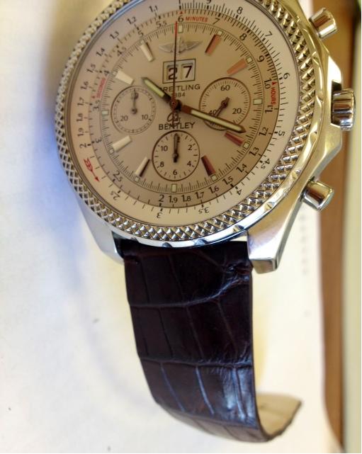 Год производства 2008. Куплены в прошлом году в ломбарде. В комплекте только часы и ремешек из крокодила (не родной), практически не ношенный. Часы на браслете. Размер 48,7 мм. Не смотря на большой размер очень хорошо сидят на руке. В мастерской "Точный ход" проведена замена прокладок и диагностика, необходимости в репассаже нет. Состояние очень хорошее. Торг.