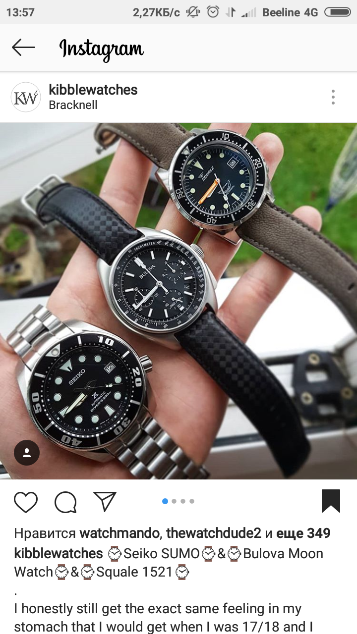Интересное фото, сумо у меня не было, а вот такие же, но синие Squale были - продал из за того что ну очень маленькие были, пытался их несколько месяцев носить, но не прижились. Просто имейте в виду, что у сумо как и у все дайверов есть безель, который всегда визуально уменьшает Часы. А у буловы практически циферблат весь корпус