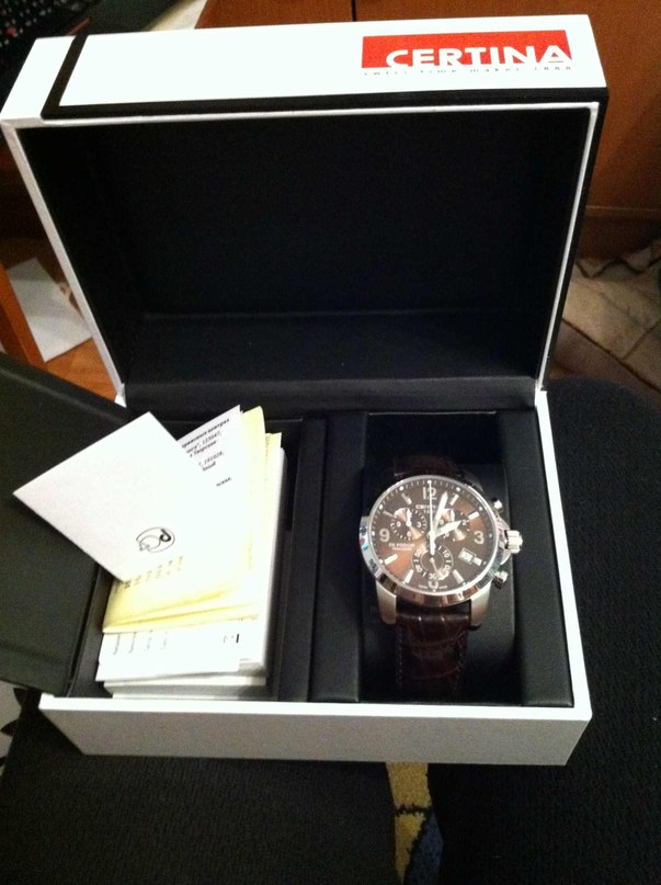 Big Size, размер 42мм как раз, отличный механизм ETA 251.262, ну и цена чуть больше 20, вобщем денег решил не жалеть и приобрести уже хорошие часы. Покупать по интернету не решился, но и официального представителя в моем городе нет. Так как в феврале намечалась поездка через Москву думал приобрести их там, но увы прилетел я в столицу поздно вечером ( самолет задержали ) и часы купить не получилось. Дальше ехал я в Владимир и нашол оф. агента там, к счастью данная модель в расцветке "шеколад" была у них в наличии и часы были куплены. Смотрятся очень красиво, одновременно дорого и спортивно, но все бы ничего если бы не моя "лишняя" внимательность, а именно по стеклом я разглядел мелкие частички и ворсинку, настроение сразу в минус. Как так такие часы и такой недостаток. Пошол к диллеру, часы взять согласились без проблем, но ждать 45 дней я ни как не мог, так как нужно было уезжать домой. Обратный путь тоже лежал через Москву, поэтому я решил сам посетить сервис-центры. Времени было немного, а точнее только один день, сначала поехал в Омегу, шлюзовая система, ребята в халатах, все очень круто, часы посмотрели, но на месте сделать не получалось, нужно было сдавать и ждать неделю. Далее я поехал в Евротайм на Сретенском бульваре, где в течении минут 20 часы вскрыли, почистили, сделали проверку на герметичность, по окончанию работ выдалии талон. На счет Евротайма, они являются авторизированным сервис-центром, но все диллеры отправляют только в Омегу, ну и памятке по Москве отмеченна только Омега, странно, но я думаю просто так в Евротайме обслуживание мне бы ни кто не сделал. Ну а в общем часами я доволен, несмотря на этот маленький энцидент. Ну думаю что совет брать с собой стекло и рассматривать внимательно часы будет не лишним, думаю даже если вы покупаете часы премиум класса, так сказать на своем опыте