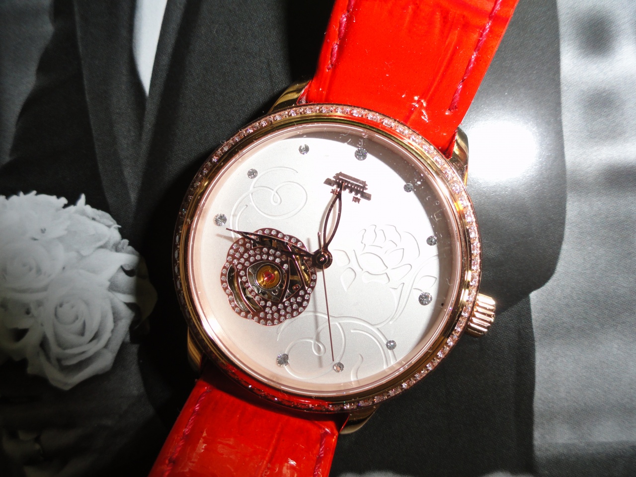 Добрый день уважаемые форумчане , хочется предъявить фото подарка сестре-- (женские часы ) механика,автоподзавод, завод вручную,стоп секунда и сапфир с двух сторон и украшение "открытое сердце в виде цветка украшенного цирконами и позолота корпуса! Как то заглянул в интернет магаз. известный, увидел и ..сразуже купил . С часами освоились ,удобно ,нет даты! и пользуясь 6 месяцев часы " разошлись" отставание 1,5 минуты за две недели .фото как получилось... цвет ремешка обсуждался с продавцом в наличии было белый и рыжий.