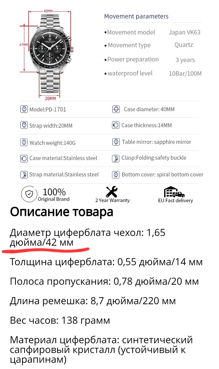 Если Вы опустите ниже—как раз видите упоминание про 42мм