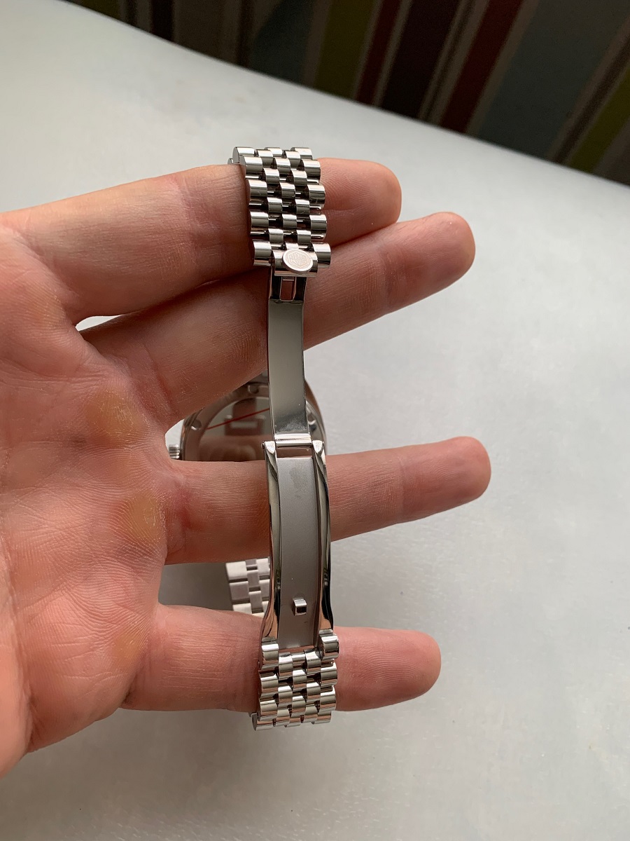 Пришел один из трофеев распродажи 11.11. В сравнении с Cronos Datejust который стал для меняя неким мерилом чайнавотч. Давно смотрел на эту модель, правда в другом цвете, но решил, что НГ близко надо порадовать чем то себя ярким. Cronos конечно чувствуется более проработанным продуктом, но тут за них другие дизайнеры хорошо поработали, а они грамотно скопировали. SM это собирательный образ, который в целом получился вполне гармоничным. Уровень обработки у них совсем разный, но этот SM ни такой острый как другие модели которые были у меня. Циферблат шикарного насыщенного красного цвета. Окошко даты могло бы быть побольше, а то цифры полностью видно только под прямым углом. Диаметр у часов одинаковый, но за счет более крупного циферблата у SM они кажутся больше. Браслет на мою руку 19 см, сел ровно, людям с более купным запястьем надо просить доп звенья. Этот браслет не регулируется в плюс. Есть у них другая застежка, но я специально у продавца уточнял чтобы был именно этот браслет. В целом часами доволен.