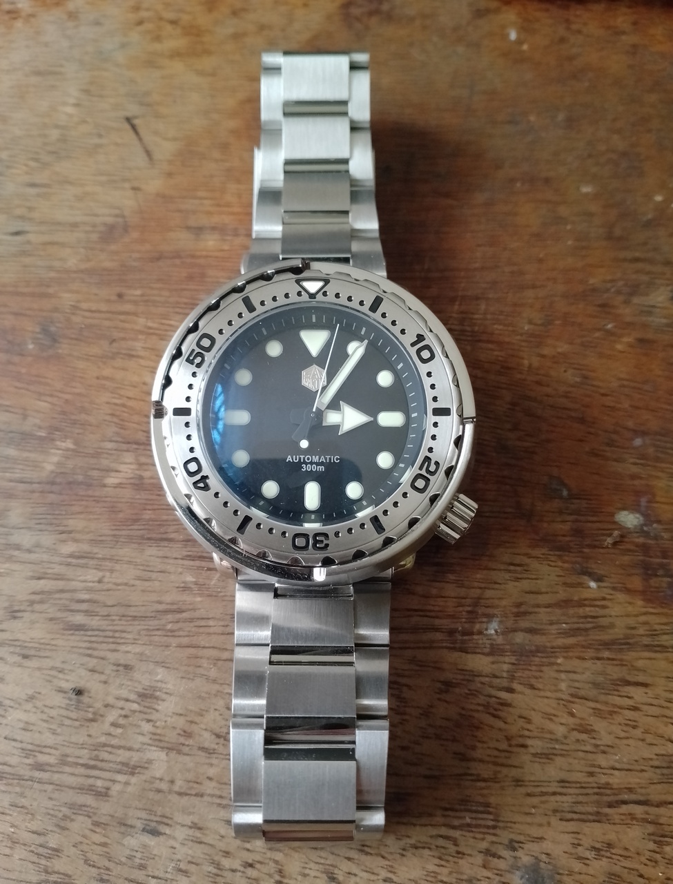К сожалению, на китайских часах сложно поставить что-то отличное от "родного" браслета, у всех разное расстояние между дужкой и корпусом часов и разный радиус корпуса, а "родные" браслеты, идущие с часами не всегда радуют толщиной металла и монолитностью устройства. Из китайских микро-брендовых вариантов мне нравится браслет ХеймДаллр. У моих Монстр в.3.0 браслет прям как хвост толстого лобстера, звенья, как куски металла, очень классный, шпильки выполнены в виде составных трубок (шпилька с петлёй) - видать полностью скопировали с оригинальных Сейко Монстр. Единственный недостаток - литая клипса была плохо обработана и резала запястье, пришлось взять в руки бархатную шкурку, самую мелкую какая бывает и полирнуть края клипсы. Это тот случай, когда я, наоборот предпочту штампованные застёжки литым; штампованные - обычно мягкие, лёгкие, хорошо обработанные и не режут руку; литые - если плохо обработаны, - это головная боль и мученье.