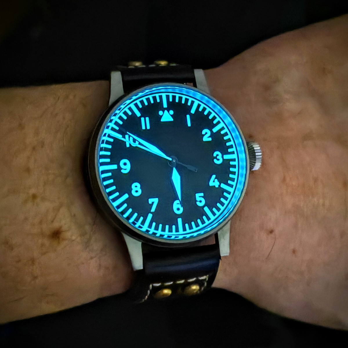 Стоковый ремень заменил, не хочу разнашивать его) поставил канвас алишный. Надо сшить напульсник, т.к. зг очень острая, приходится задирать часы повыше. Люм хороший, радует. Ещё порадовало количество витков на зг. Ещё жду тип б такие) жаль бронзовых нет в продаже на Али