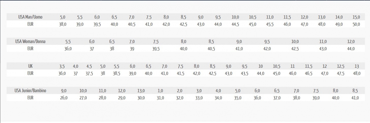 Размерная сетка ZAMBERLAN это вообще отдельная тема