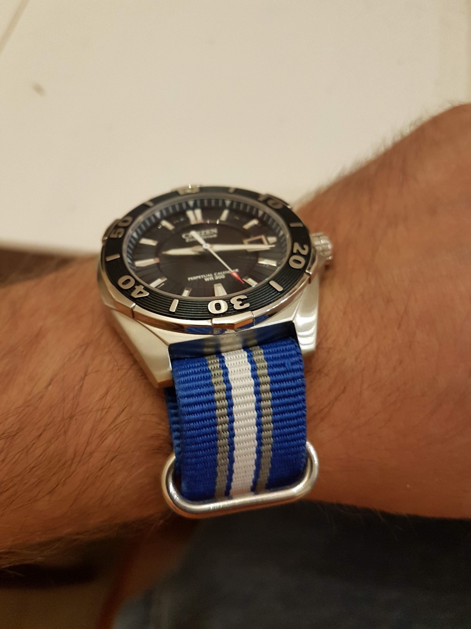 Синий не очень подходит, лучше черный НАТО. А самое лучшее каучук, последнее время носил именно на нем, очень удобно и не так тяжело.