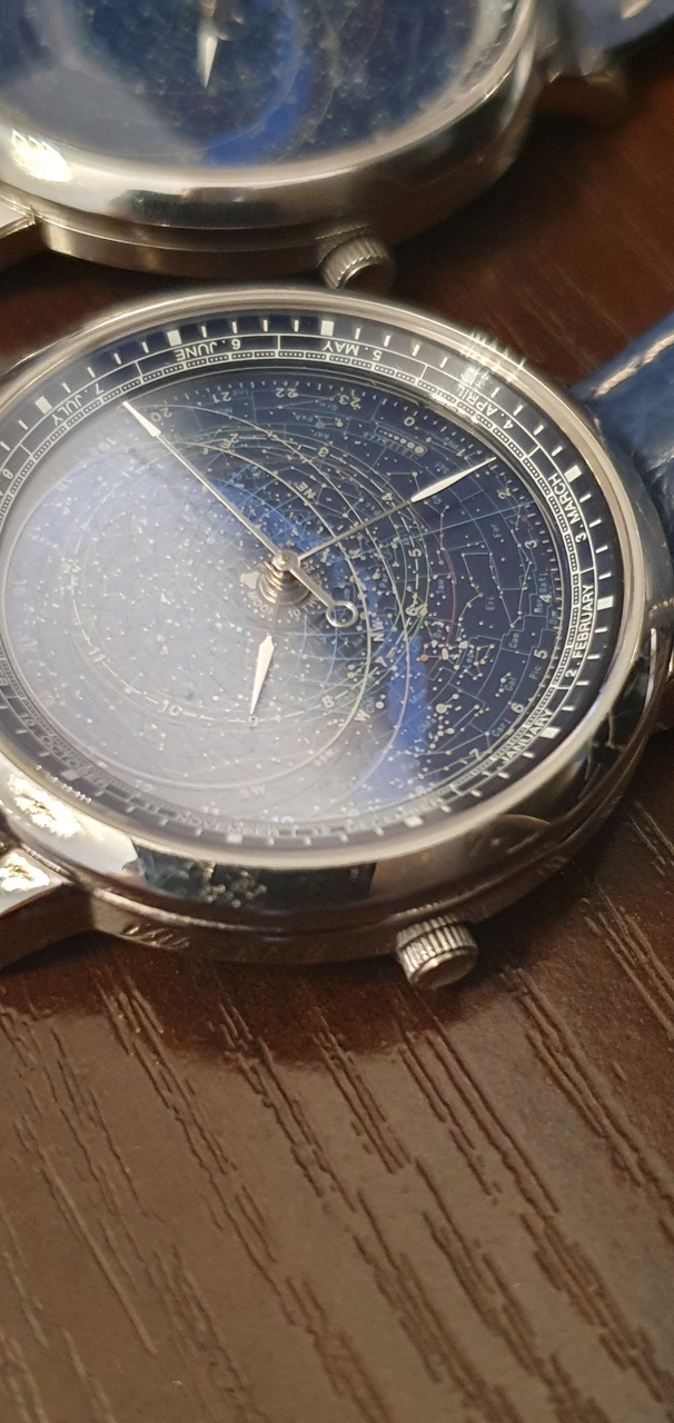 И еще. Вот немного выше сравнение... Корпус, ушки... Да не то это все! Здесь главное именно цыфирь и все, что с ним связано! Эти стрелки - это просто на мой взгляд шедевр! Специально прикладываю "официальное" фото (из мануала) - оно четко передает как это все видится по факту, в живую: тонких оснований стрелок практически не видно! Видны именно белые лепестки. Это же абсолютное слияние с дизайном! Они выглядят как метеоры на небе! Они просто идеальны! Это Вам не Компанолы какие-то и прочие Аккуристы