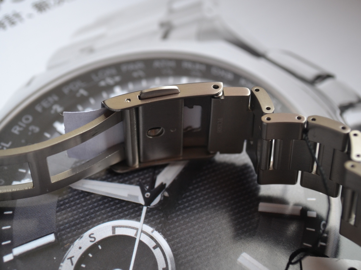 Часы выполнены из титана с нанесенным покрытием от царапин, имеют сапфировое стекло, а также систему быстрого удлинения/укорачивания длины браслета с помощью застежки