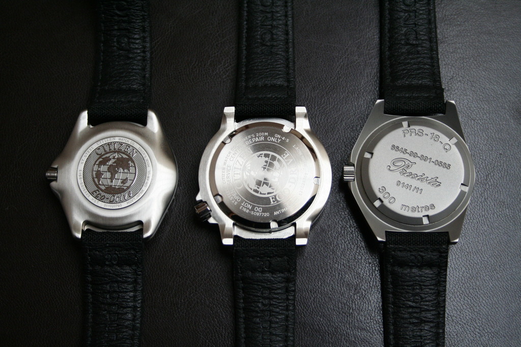Japan: Seiko Sumo Chronograph / Citizen Nighthawk Radio Controlled / Seiko Sportura Chronograph Swiss: Hamilton Khaki Air Race Chronograph / Victorinox Ambassador Automatic
