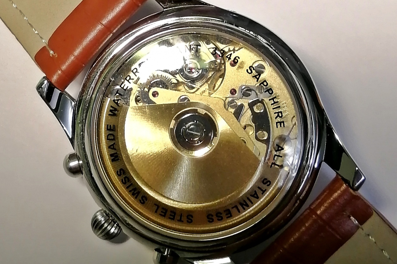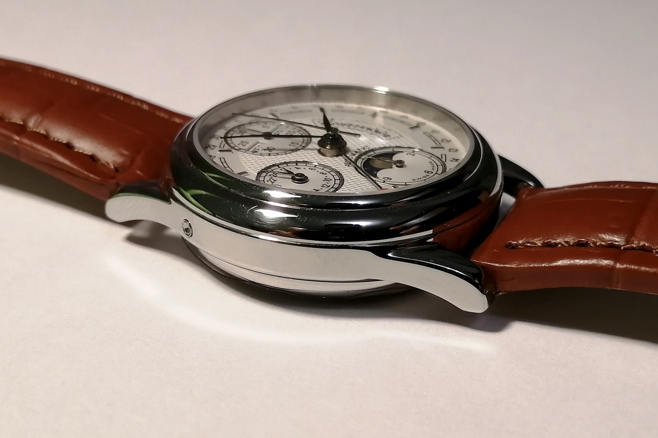 Калибр ЕТА Valjoux 7751 (Секундомер;12/24 часовой формат времени; Дата отображается центральной стрелкой; Индикация дня недели, месяца; Фазы Луны), оригинал Swiss Made.