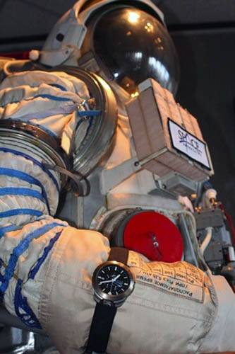 Хронометр в титановом корпусе весит всего 92,5 г и полностью водонепроницаемы на глубинах до 100 м (что, безусловно, крайне важно в космическом путешествии). Интересней другая «фишка» этого устройства особый люминесцентный материал, который позволяет разглядеть циферблат и стрелки в самом непроницаемом мраке. Обращают на себя внимание и довольно крупные кнопки управления, пользоваться которыми можно, даже не снимая перчаток скафандра.