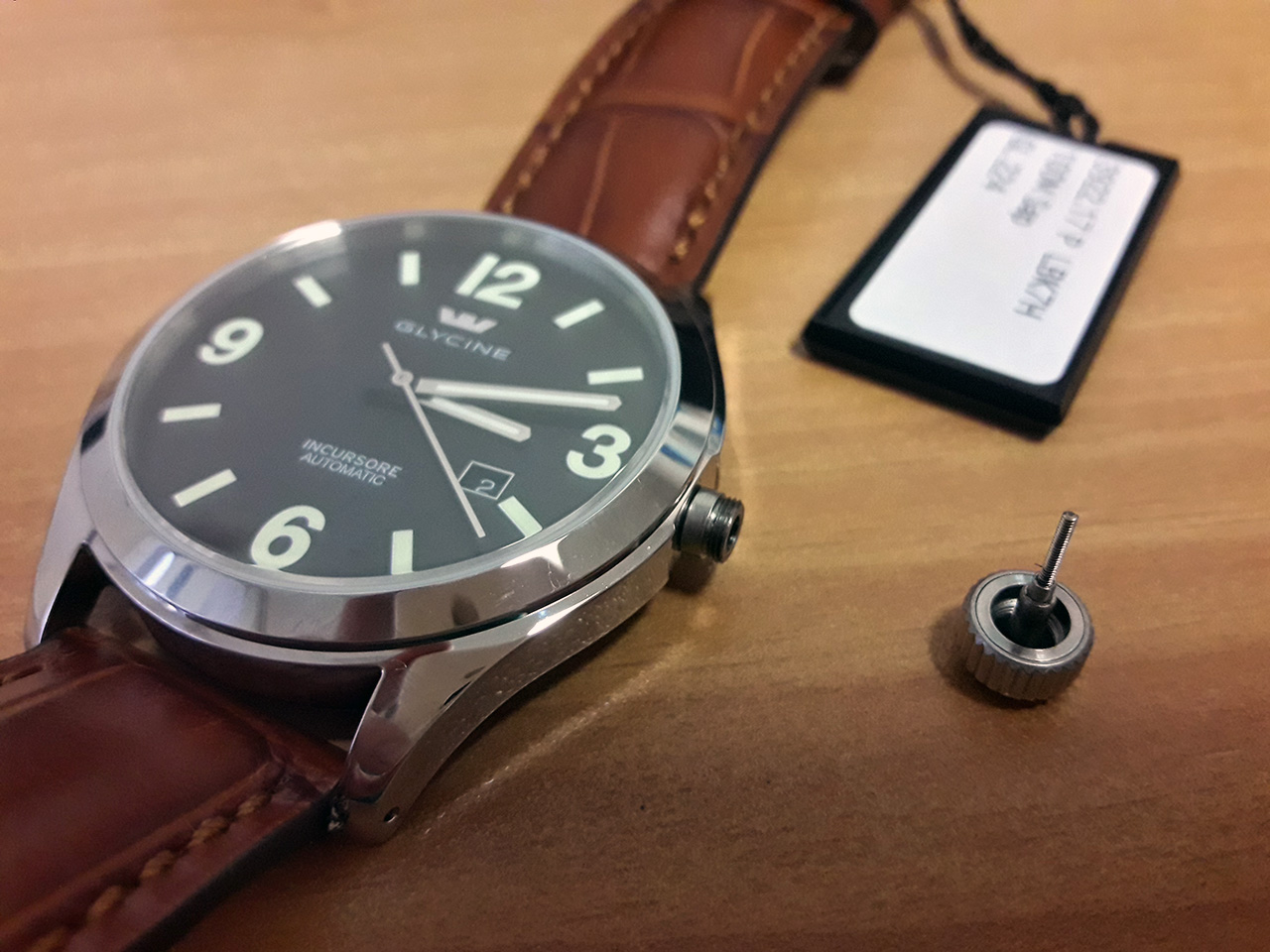 Glycine Incursore в одном известном магазине-дискаунтере и купил. Опыт оказался неудачным. При первой же попытке завести часы головка осталась у меня в руках.