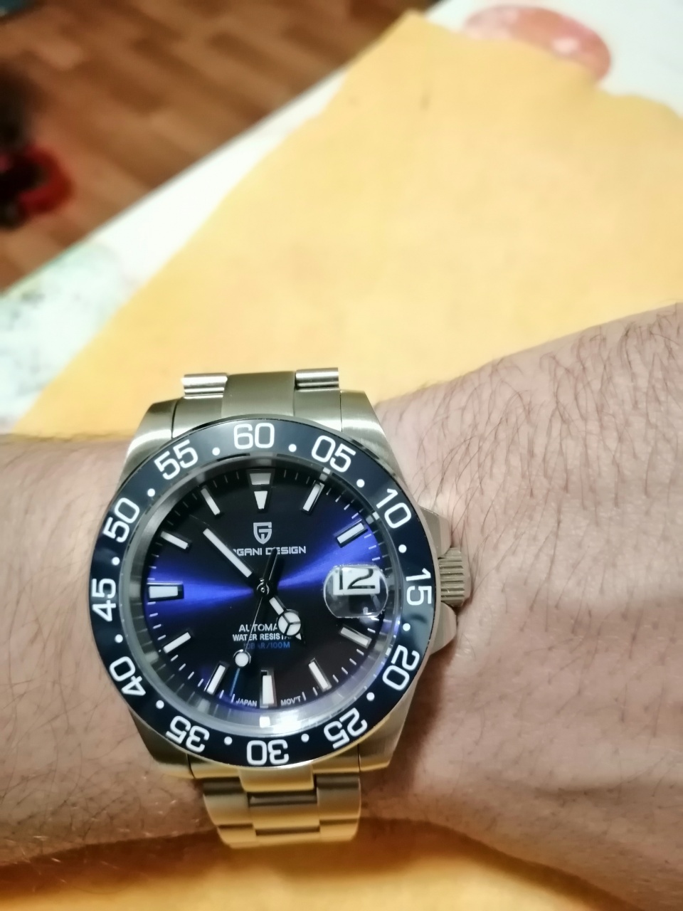 Pagani Design PD-1670. Корпус и стрелки сперли у Ролекса. Метки и разметку безеля похоже у TagHeuer. В целом у меня впечатления положительные, но я ни разу не эксперт. Часы последний раз носил лет 16 назад, и это были кварцевые Cassio. Весь мой опыт это четыре месяца ежедневного чтения форума. В результате чего, постепенно, от идеи Longines HydroConquest, через MIDO Ocean Star и через Orient Mako 3 пришел к Pagani. О чём и не жалею.