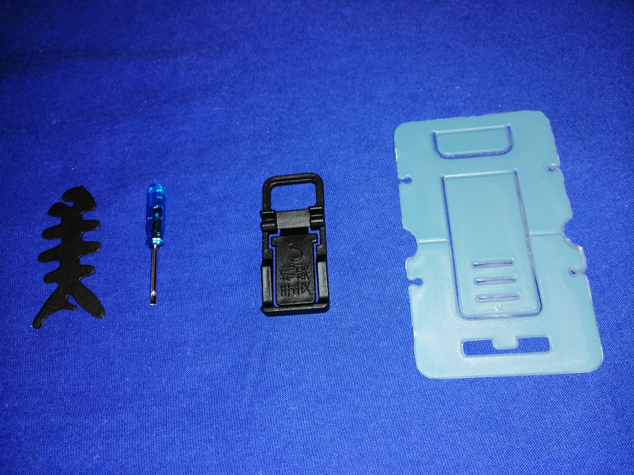 В комплекте помимо псевдо-гарантийного талона и инструкции, куча всякой фигни. Наклейка для телефона, с защитой от электромагнитного излучения ( странно, что шапочку из фольги не положили), скрепка для доставания сим-карты, затычка со стразиком для гнезда наушников (не держится кстати в Хуавее, выпадывает), картонная ёлочка (ребёнок сказал, это какая-то подставка для наушников), странная черная фигня с иероглифами – гугл переводчик сообщил, что это подставка для телефона. И последнее – голубая фигня размером с кредитку. Если кто знает, подскажите что это? Я так подозреваю, возможно, крепление для разборки браслета?