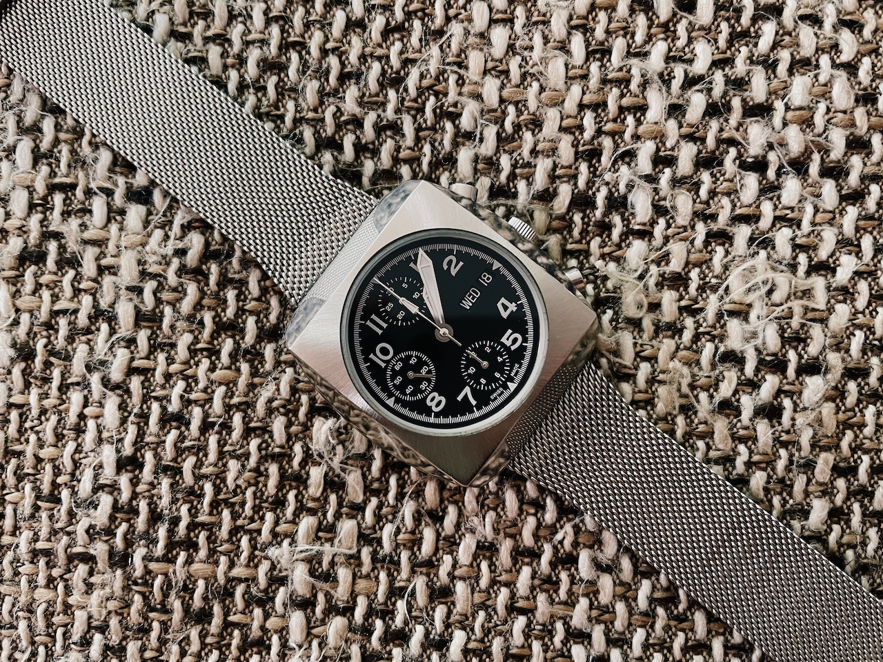 Короче, оно приехало: меш-браслет с сужением (!) от 22 мм у ушек к 18 мм у застёжки. Вот