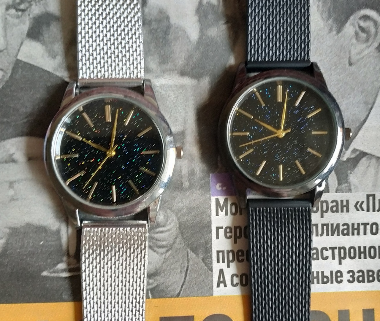 На чёрном две маленькие стрелки жёлтые, на мой взгляд часы более глазастые.