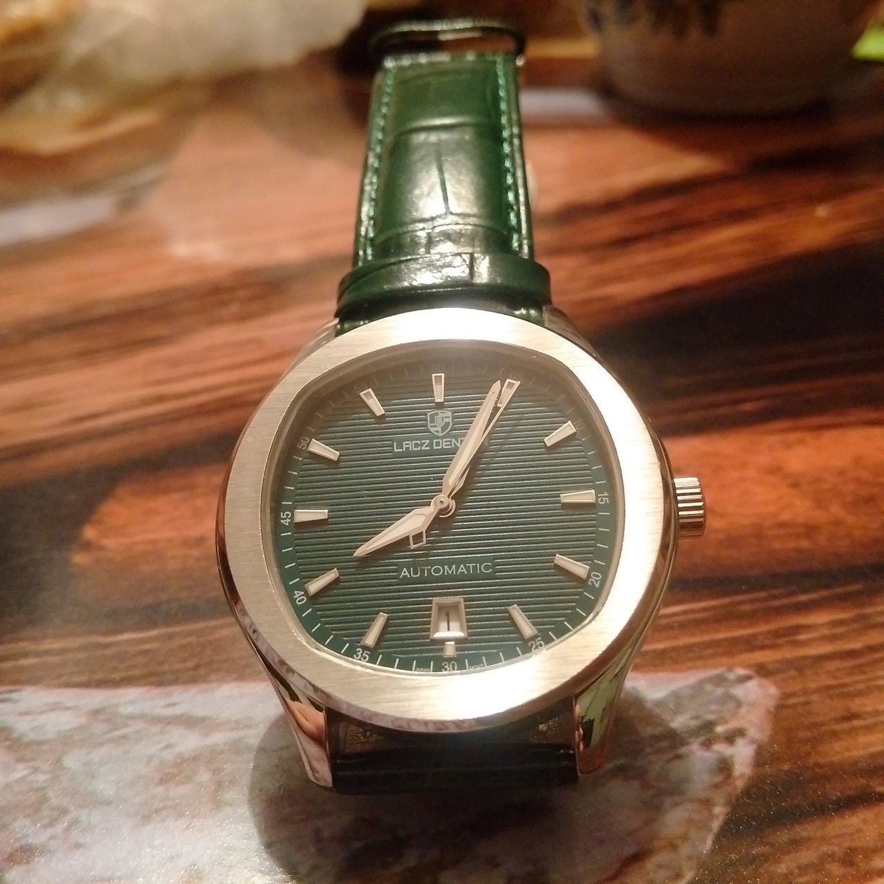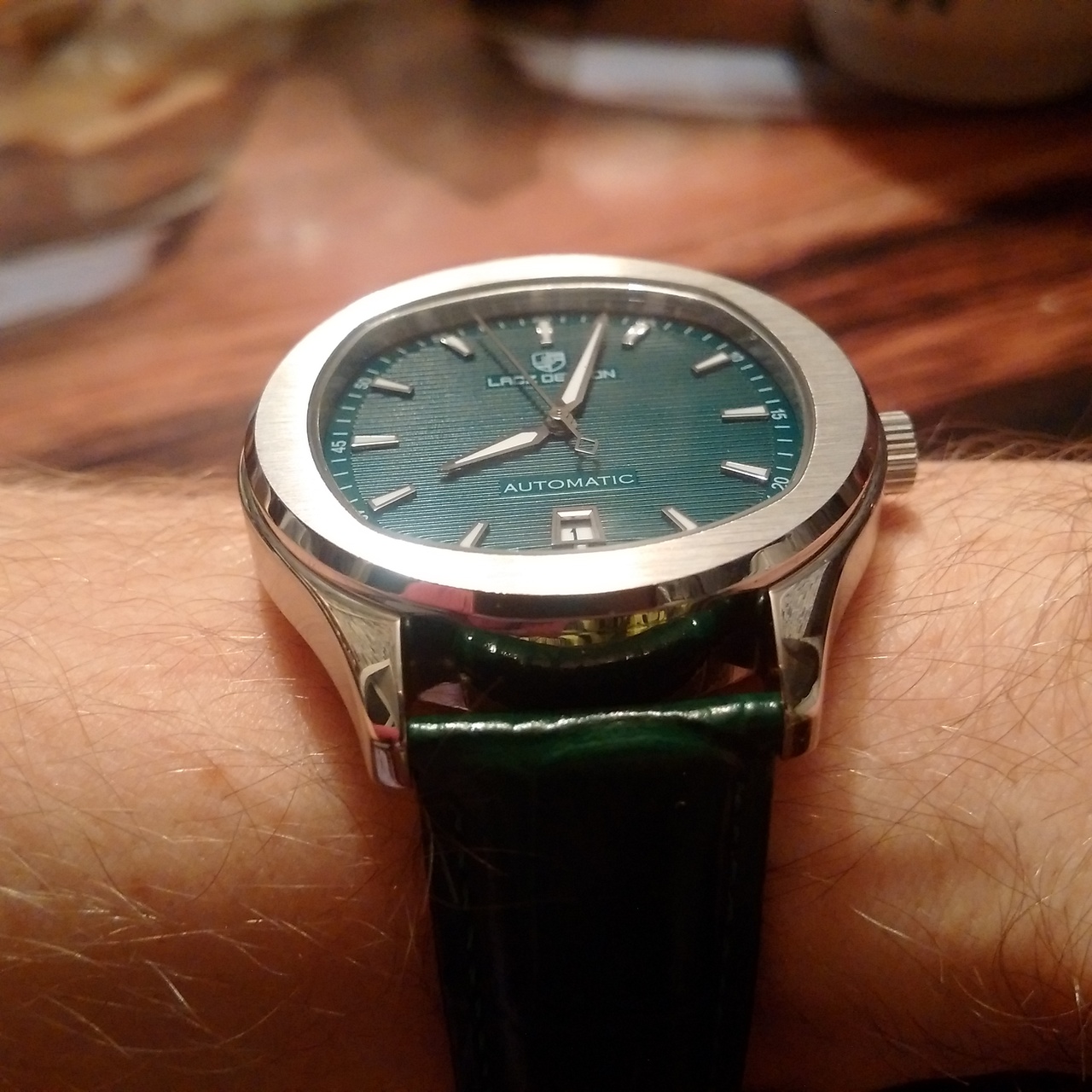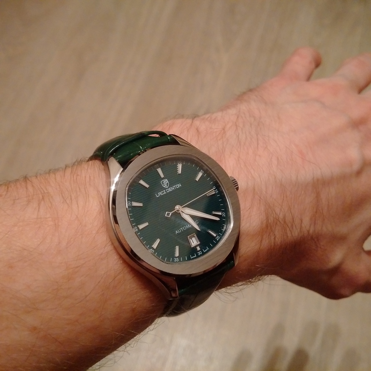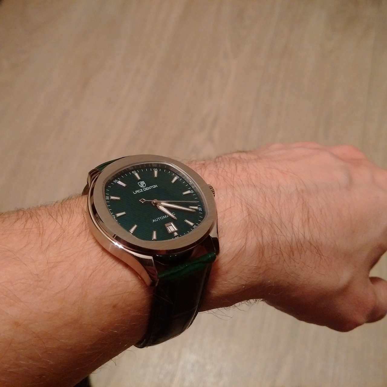 мои первые часы с Али, ну или вернее первый хоммаж с Али. пару-тройку лет ходил с мыслью решиться на хоммаж патековского наутилуса, что он за это время, практически разонравился, и тут увидел эту красоту. странно, что из оригиналов, по картинке, изначально меньше остальных нравился, казался недопатек, недороялоук, а вот жеж на! - зеленый цифер, и я "поплыл"