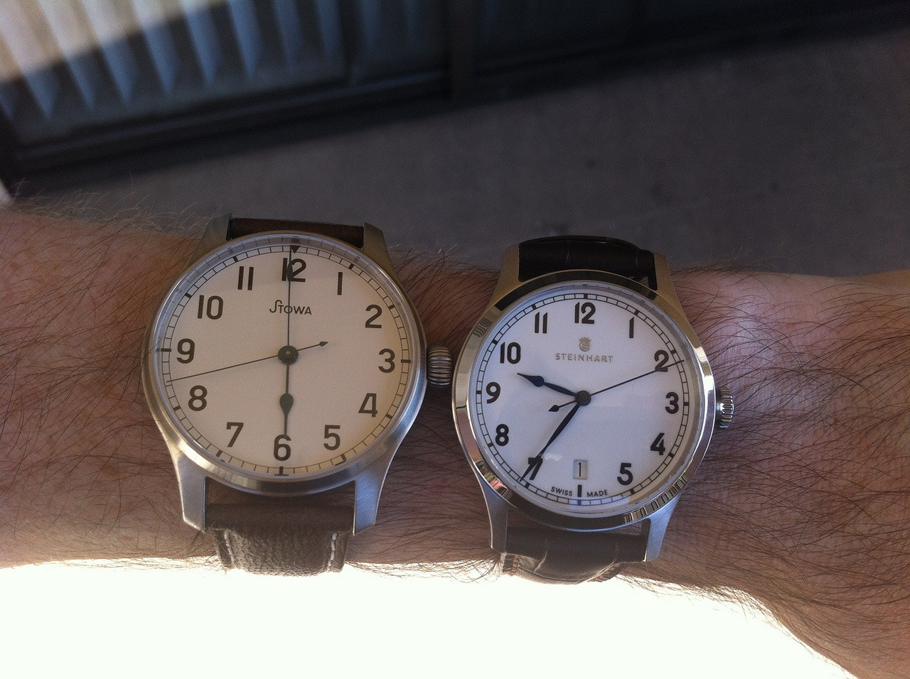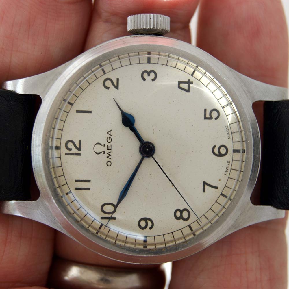 RAF 6B/159 это называлось. Изначально в 1930-х эти циферблат и стрелки шли в комплекте с т.н. Weems second setting device — по сигналу точного времени вставляешь ноль на безеле напротив текущего положения секундной стрелки и зажимаешь его дополнительной головкой. Вот такая Омега, в левом нижнем углу: