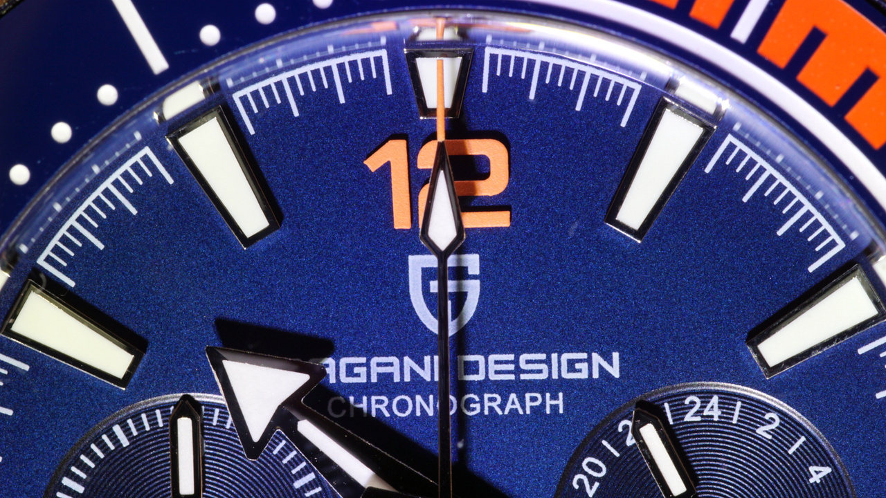 Больше всего боялся судорожно дрыгающуюся секундную стрелку, но как обычно ступил и не учел, что часы хронограф и секундная стрелка 95 процентов времени будет стоять на 12. Хронограф работает нормально, отсчет минут по малому циферу на 9. Цифер на 3 это 24-ех часовой отсчет. Силиконовый ремешок красивый и приятный. Застежка непривычная, но удобная и не расстегивается. Размер ремешка "китайский", т.е. на запястье 19 см придется носить на последней/предпоследней дырочке. Часы относительно тяжелые, 109 граммов, что радует . Люблю увесистые вещи