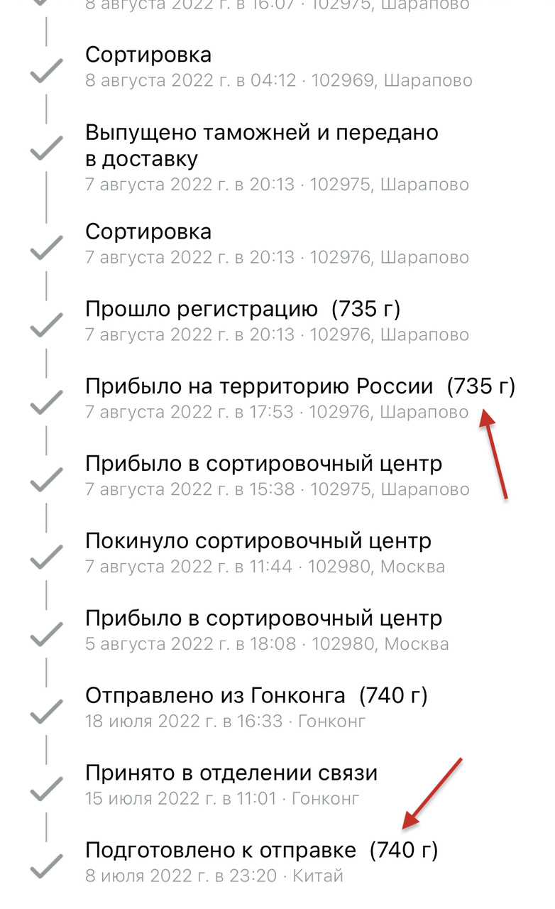 А вес для таких отправлений всегда указывается сразу и виден по треку.