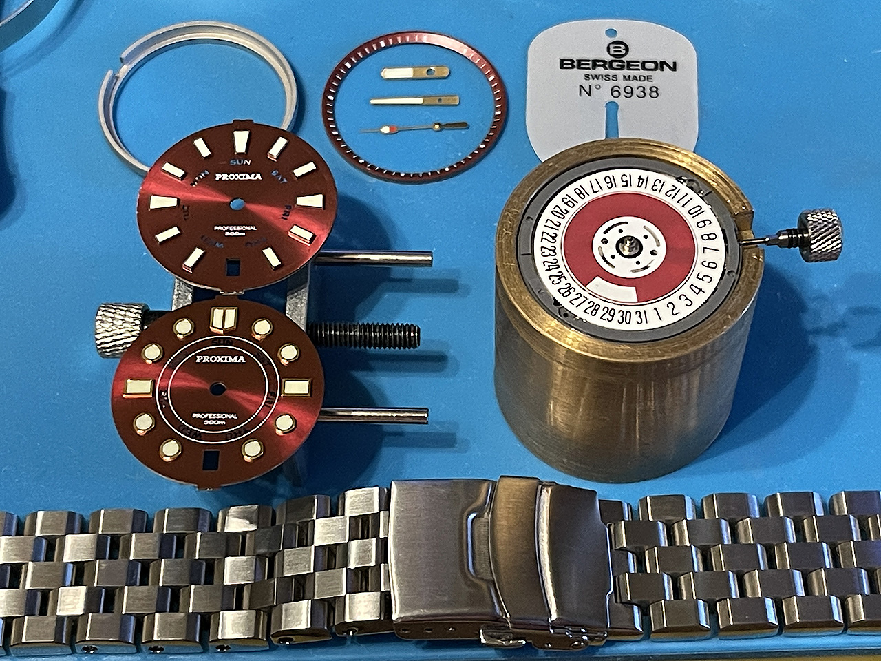 3. Сравнение циферблатов , вид календарных дисков , кольцо с минутной разметкой и кольцо удерживающее механизм в корпусе .