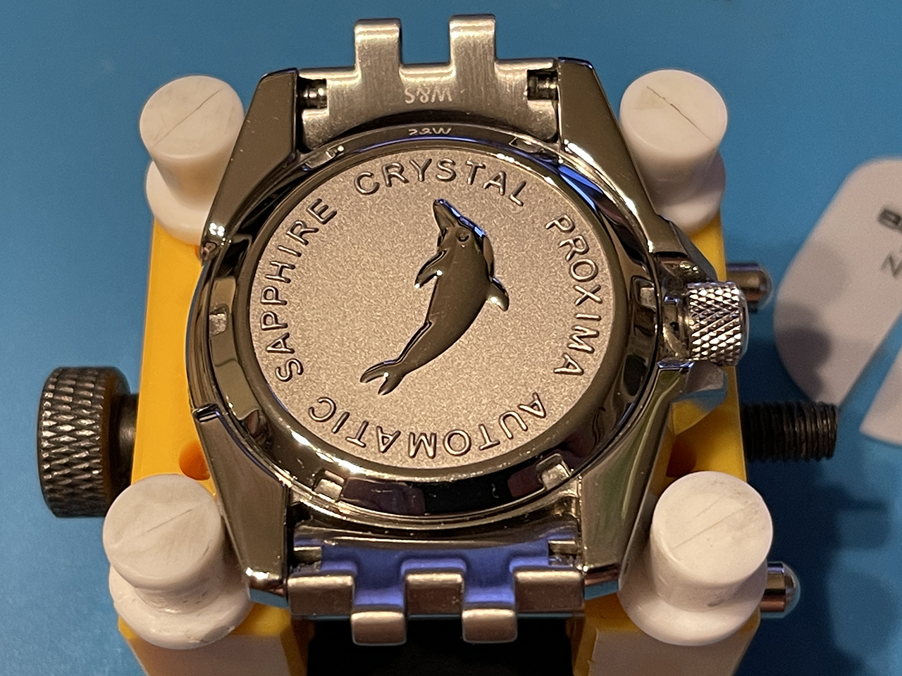 8. Вид на заднюю крышку с эндлинками браслета . Чтобы лишний раз не царапать корпус выкрутил винты у линков и снял браслет .