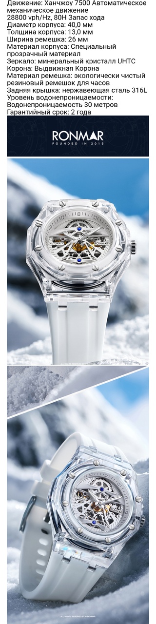 У меня в сете не было китайских часов, на лето я решил это исправить. Хотелось прикупить что-нибудь для плавания, яркое и заметное, ну и по цене недорогое. Полазив на Али обратил внимание на дайверы со странным названием Vakuy Rigas. Отзывов на модель не было, но решил рискнуть и заказал. Со скидкой обошлись в 7200. Через три недели приехали в Москву. Часы пришли в простой пластиковой коробке, внутри формованный поролон. Комплект состоял: часы, толстый кожаный ремень со стальной баклей, элластичный силиконовый ремень со стальной баклей, отвертка, запасная шпилька и 2 винта. Внешний вид часов достаточно вызывающий, напомнил мне незаконнорожденного ребенка боевого пловца и лодки, но качество изготовления оказалось на неожиданно высоком уровне. Корпус-подушка полированный, безель с мягким сатинированием на 120 кликов, в меру тугой и без люфта, заводная головка на длинной резьбе с уплотнением, степкло с нормальной линзой и антибликом. Цифер матовый черный, в мелкую резную клеточку, метки круглые полированные, стрелки полускелетон, не тонкие, но и не слишком массивные. Люм на метках и стрелках нанесен очень аккуратно, заявлен как С1, светит зеленым, но не долго. Мех сигулловсий ST25, автоподзавод очень тихий. Задняя крышка глухая, сатинированная с лазерным названием и рыбкой wr 100 m, хотя на сайте заявлено 200м. Из минусов: очень маленькая по диаметру заводная головка под откидывающейся винтовой крышкой, ухвать ей пальцами могу с большим трудом. В остальном замечаний по часам нет, на руку 18,5 сели отлично, читаемость великолепная. Честно говоря не ожидал за такие смешные деньги. Посмотрим, как по точности и нахождению в воде. Пока часами доволен. Кстати зашел на сайт, уточнить wr, а там стоимость стала 17800 !!!.
