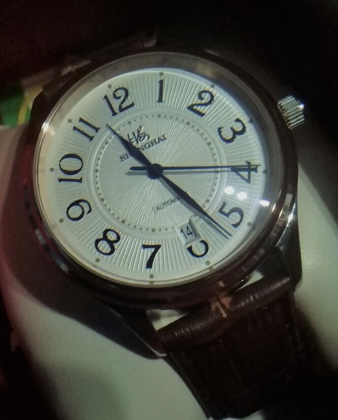 Люм: присутствует, но он странный. Во-первых, люм на стрелках и на цифре разный, и дело даже не в цвете (явно зелёный на цифере и светло-желто-зеленый на стрелках), а в том, что он по-разному реагирует на засветку. Стрелки засвечиваются мгновенно и от любого источника света; цифер на подсветку искусственным светом реагирует вяло, зато от солнечного света заряжается так, что начинает светиться при нормальном освещении. Ультрафиолет ему нужен, что ли?