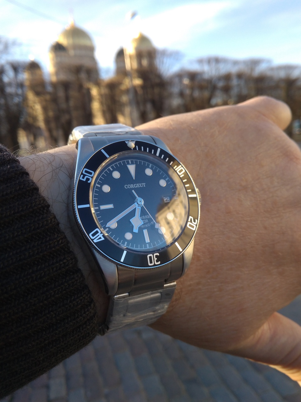 Тест на водостойкость часы прошли. Читаемость стрелок однозначно лучше чем у прошлых Коржиков - утром, спросонья, можно определить время.