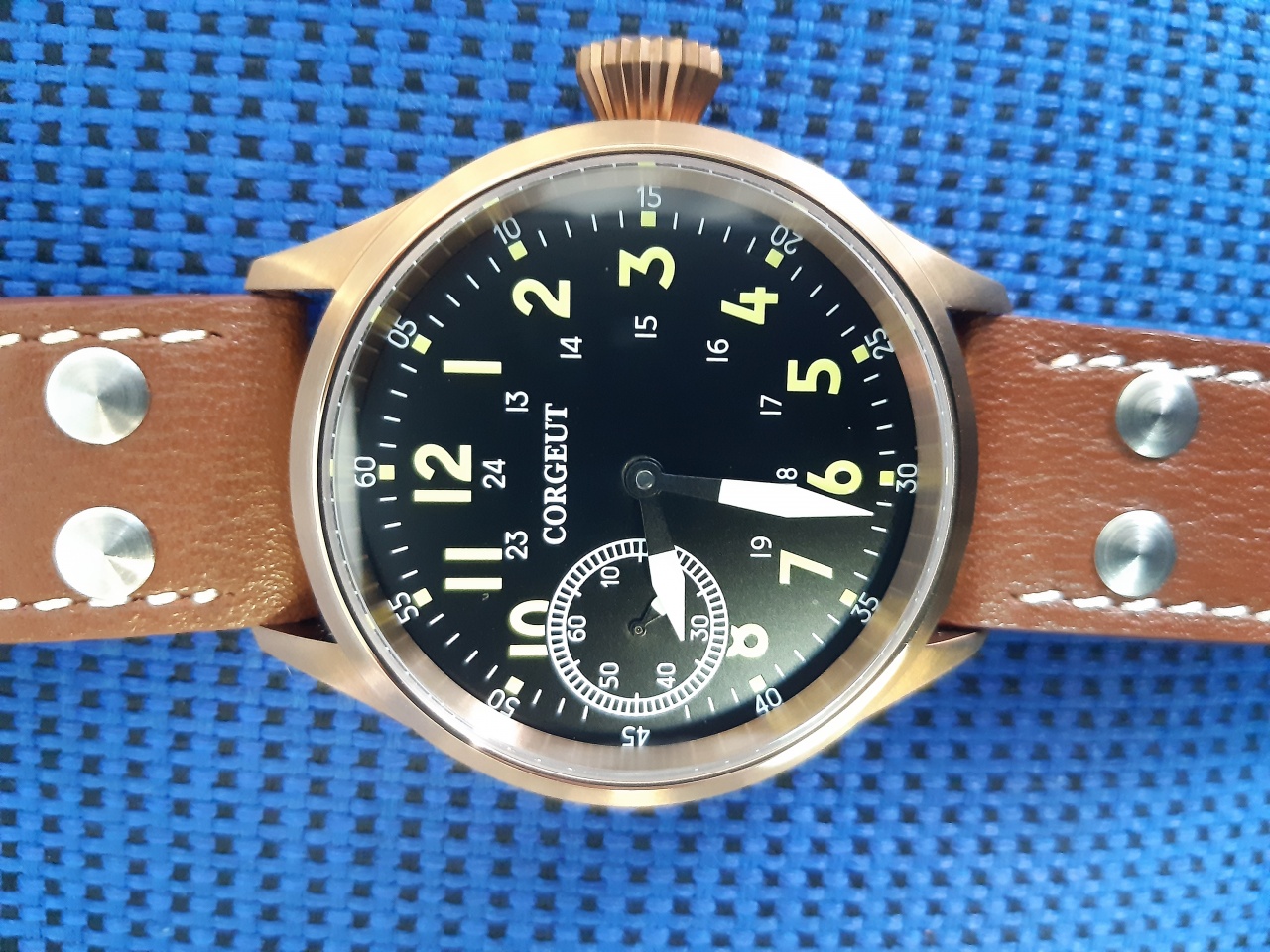 Вчера пришли очередные часы из Китая. Волею случая, это опять Corgeut. Пилоты в стальном корпусе с бронзовым покрытием (как утверждают продавцы). Давно хотел попробовать именно бронзу, хотя и наслышан о недостатках этого материала. В общем, поживем – увидим. А пока могу сказать, что еще ни разу у меня не было к часам такой «любви с первого взгляда». Видимо, не те часы покупал.