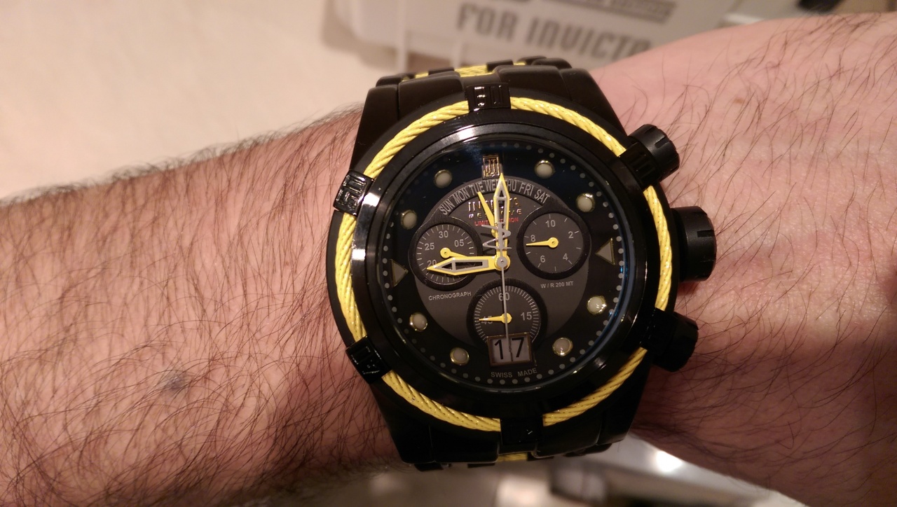 Продал все свои часы Invicta и заказал парочку новых. Поделюсь своей долгожданной моделью man of war. Удалось взять с двумя кожаными ремешками и с браслетом. Наконец-то в моих часах только самые нужные для меня функции и идеальная читаемость цифера. Модель мне визуально нравится больше оригинальных Panerai.