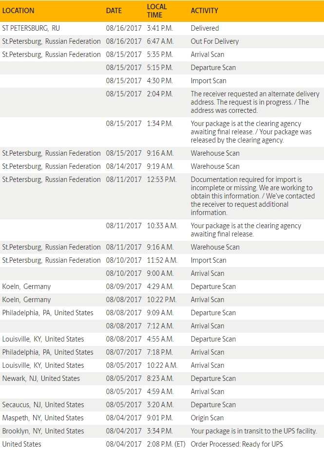 подробности по доставке: за 3 дня из Штатов (Бруклин) часы добрались до Германии (Кёльн), 4 дня пролежали в Германии и 8-го прибыли во Внуково (Москва)