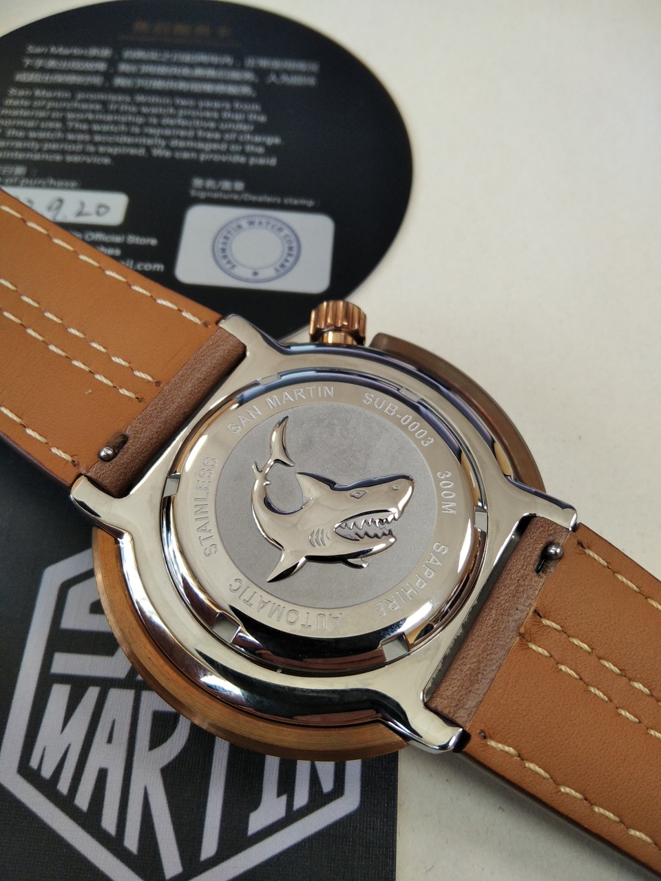 Пришел сегодня тунец от SM , заказанный 16.09 по купонам, ну что сказать я доволен , первая бронза исполнение по мне на уровне, люм бомбит, читабельность прекрасная , кмк ремешки у китайцев коротковаты , запястье 20 на предпоследнее отверстие зашло, ну да ладно все равно что-то делать надо будет с ним, может быть браслет черный, бронзовый хрен найдешь бюджетный, если сравнивать со стилдайвом , то в плюс SM очень четкий и уверенный безель с мягкой более удобной работой и более интересная задняя крышка ,цифер глубокого черного цвета , у SD он более серый, ну и на первый взгляд люм на метках более толстый и ровный, из минусов для меня не просверленные насквозь душки