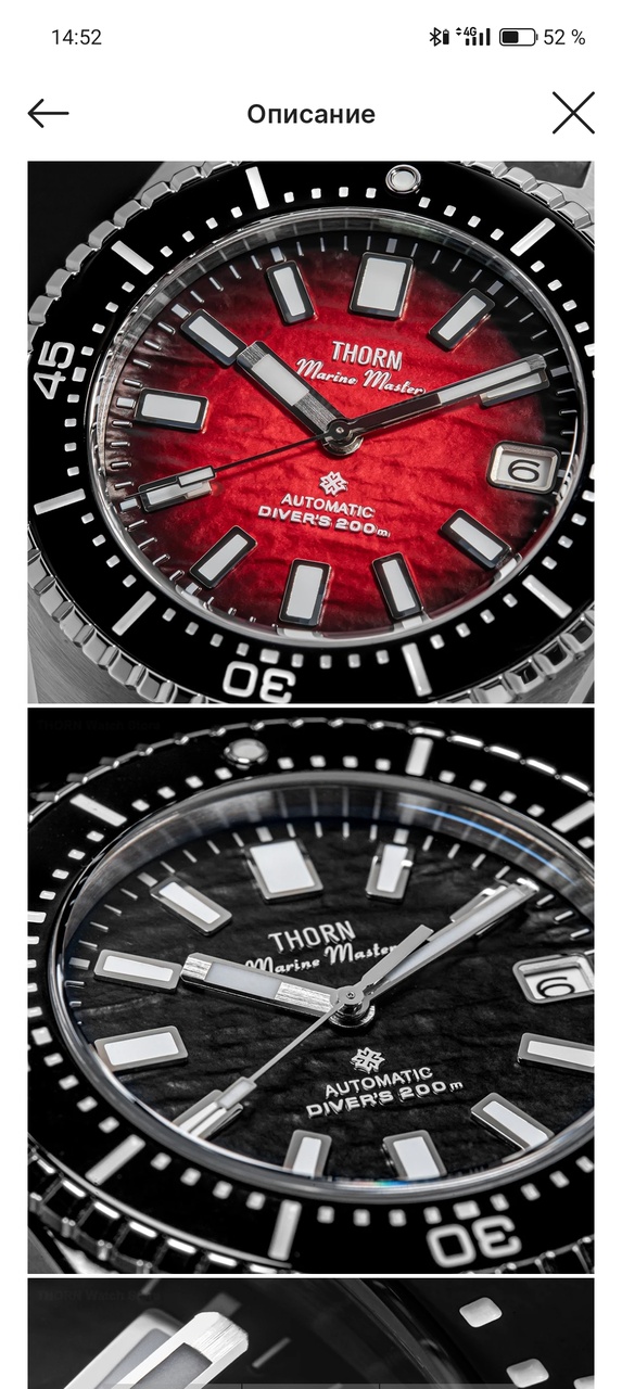 Привет часоголикам! Приехали ко мне мои Cadisen AquaDiver (homage Helm Komodo). За цену 5789 р., что они мне обошлись, считаю, что часы - прелесть. Стекло - сапфир, водо-защита 100м, нержавейка, безель односторонний (чуть люфтит, крутится очень легко со щелчками в одну сторону), браслет удобный, длинный (пойдёт на любую руку, снял пару звеньев), заводная головка большая, ухватистая, удобная, завинчивается долго на несколько витков (оборота 4). За эту цену нет претензий, если бы стоили чуть дороже, наверное, придрался бы к люму, он довольно хреноватый, синего цвета, в остальном от часов только положительные эмоции. Точность хода замерил - +20сек - что для меня не критично (хорошо, что спешат, если бы отставали, тогда бы было хуже). Сразу хочу сказать, часы маленькие 40мм, на моей медвежьей лапе в 19,5см смотрятся довольно маленькими, я привык носить 43-45-48мм; 40мм, конечно, маловаты, но для среднего и маленького запясться будут в самый раз. Интересное расположение окошка даты на 6-ти часах мне понравилось, у меня раньше таких не было, все часы - дата на 3-х часах. Очень неплохие часики с довольно оригинальным дизайном (хоть и хомаж на Хелм Комодо) на лето, да и не только - прелесть, под рубашку и под рукав отлично прячутся.