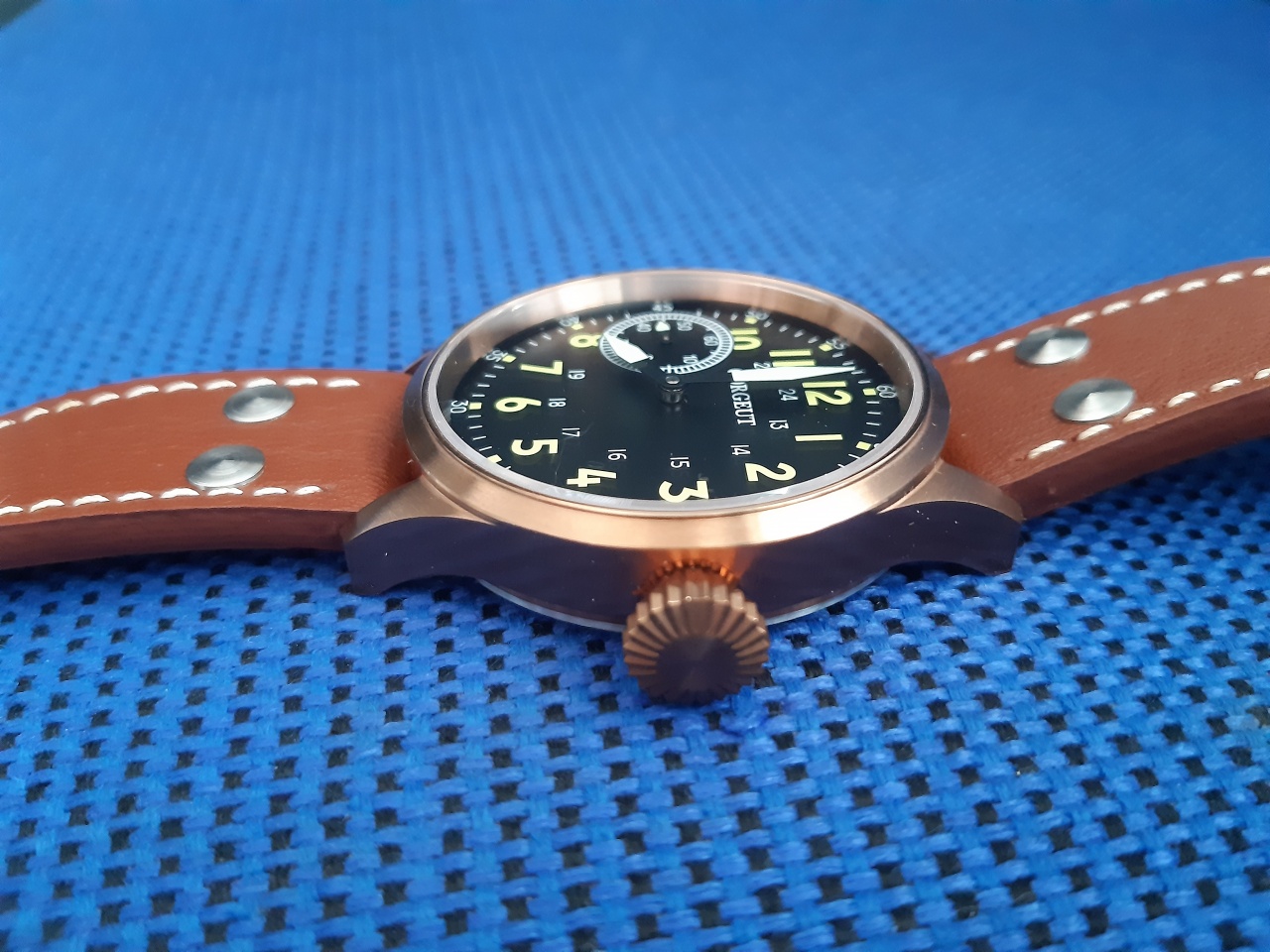 Вчера пришли очередные часы из Китая. Волею случая, это опять Corgeut. Пилоты в стальном корпусе с бронзовым покрытием (как утверждают продавцы). Давно хотел попробовать именно бронзу, хотя и наслышан о недостатках этого материала. В общем, поживем – увидим. А пока могу сказать, что еще ни разу у меня не было к часам такой «любви с первого взгляда». Видимо, не те часы покупал.