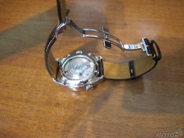 Корпус: Круглый, нержавеющая сталь, устойчивое к царапинам сапфировое стекло. Прозрачная задняя крышка с сапфировым стеклом. Диаметр: 44,00. Водонепроницаемость до 3 бар (30 м). Движение. L698 с автоподзаводом механические избиение на 28 800 колебаний в час и предоставления 46 часов запас Функции: часы, минуты. Ретроградная показывает рукой:. День в 12 часов, дата на правой стороне циферблата, малая секундная стрелка в 6 часов и 24 часа второго часового пояса на левой стороне набрать Циферблат: серебристо- закончил "ячменное зерно" с рисунком, показывая 11 черных арабских цифр, синие стальные стрелки. Браслет: Коричневый ремешок из кожи аллигатора с тройной застежкой безопасности и нажмите частей механизм открывания.