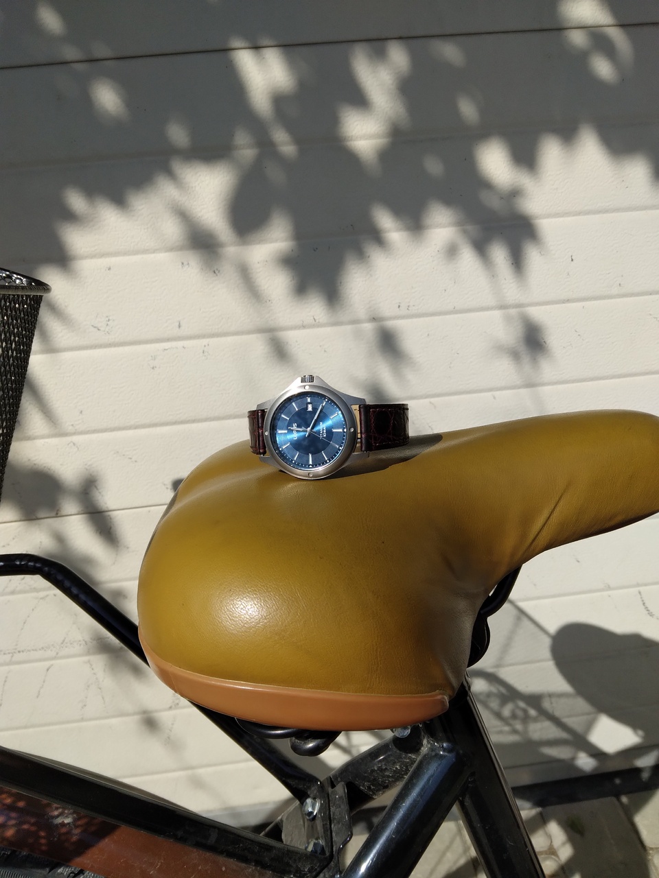 Искал по критериям: титан, небольшой диаметр (до 40 мм), синий циферблат, 10 бар, браслет.