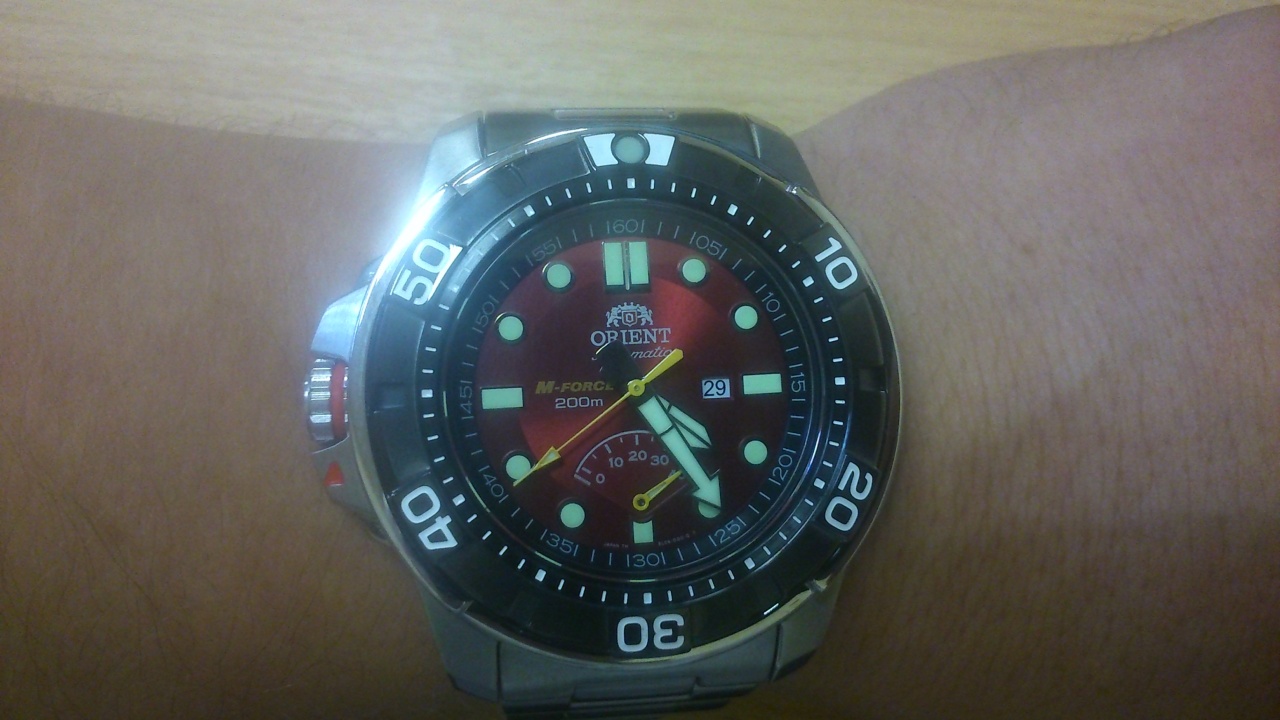 А в данной теме, несколько месяцев назад я задавал вопросы и по 300-ой серии и по 600-ой, даже ездил домой по приглашению к одному форумчанину, примерял синий 300-ый М-Форс. Браслет на нем действительно показался слишком тонким и гремящим, после браслета Атлантика Маринер, который был на мне. Но сами часы очень нравились по дизайну. Очень долго скажу я Вам, колебался, какую все-таки серию брать: 300-ую или 600-ую. В следующей, 700-ой серии не понравился дизайн и слишком большой размер (49 мм, для меня это уже черезчур при запястье 18 см), так что ее не рассматривал. Вообщем визуально больше нравилась 300-ая серия. Оранжевые хороши, но стрелки черные (не понравилось), синие не такие яркие, но стрелки красные (понравились). К тому же не последнюю роль играла цена - дешевле чем 600-ая серия. Но все впечатление портил тонкий, гремящий, на крайних линках, штампованный браслет. Долго думал и решил все же ехать в магазин мерить обе серии. Нашел в Москве по Яндексу самое выгодное предложение по 600-ой серии и поехал. Вообщем померил оранжевые 300-ые и красные 600-ые. Больше понравились красные 600-ые (разметка больше понравилась, сами стрелки (формой), особенно цветом секундная и указатель запаса хода (яркие, желтые), дата на привычном месте, а заводная головка - так даже удобнее что слева, вообще не мешает. Но главное, сами часы 600-ой серии произвели впечатление, не знаю, большой брутальности что-ли, монолитности, да и браслет на них толще и весь полностью литой, вместе с крайними линками, да и форма его поприятнее. Часы на моем запястье нисколько не выглядят большими, мой Атлантик с диаметром 44 мм, кажется на руке больше чем М-Форс с диаметром 47 мм. Вообщем при разнице с 300-ой серией в 2000 рублей, я без колебаний взял следующую 600-ую серию и нисколько не жалею. Единственное чем они уступают 300-м, это то что нет яркого оранжевого циферблата, но и красный у них тоже прекрасно на лето подходит.