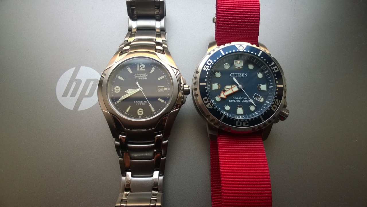 Japan: Seiko Sumo Chronograph / Citizen Nighthawk Radio Controlled / Seiko Sportura Chronograph Swiss: Hamilton Khaki Air Race Chronograph / Victorinox Ambassador Automatic