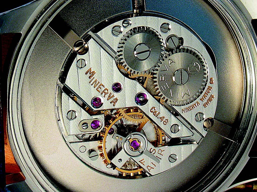 В 1940 году в руководстве предприятия появился племянник Пело Андре Фрей, положив начало 60-летнему периоду правления династии Фреев. Средний годовой объем производства в то время составлял 40-45 тысяч механизмов всех видов и предназначений: за период с 1940 по 1950 годы их было выпущено примерно 350 000 штук, причем самым ударным выдался сезон 1945–1946 годов, когда на-гора было выдано 103 000 механизмов. Основной специализацией Minerva по-прежнему оставались секундомеры и отменного качества хронографы. Сегодня, кстати, эти старинные калибры заметно востребованы лидерами индустрии для элитных винтажных серий. Их легко узнать по V-образному мосту хронографа, больше похожему на греческую букву «лямбда», которую многие знатоки часового искусства оправданно считают своего рода хронометрическим «знаком качества».<O:P></O:P>