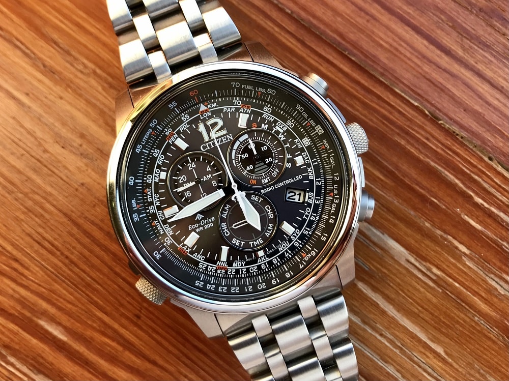 1. Тонюсенькие основные стрелки на фоне кучи суб-циферов с маленькими стрелками, и все это в блестказ хромированных элементов и окантовок = считываются значительно хуже, чем время на пилотах (я владел обоими вариантами и знаю точно)