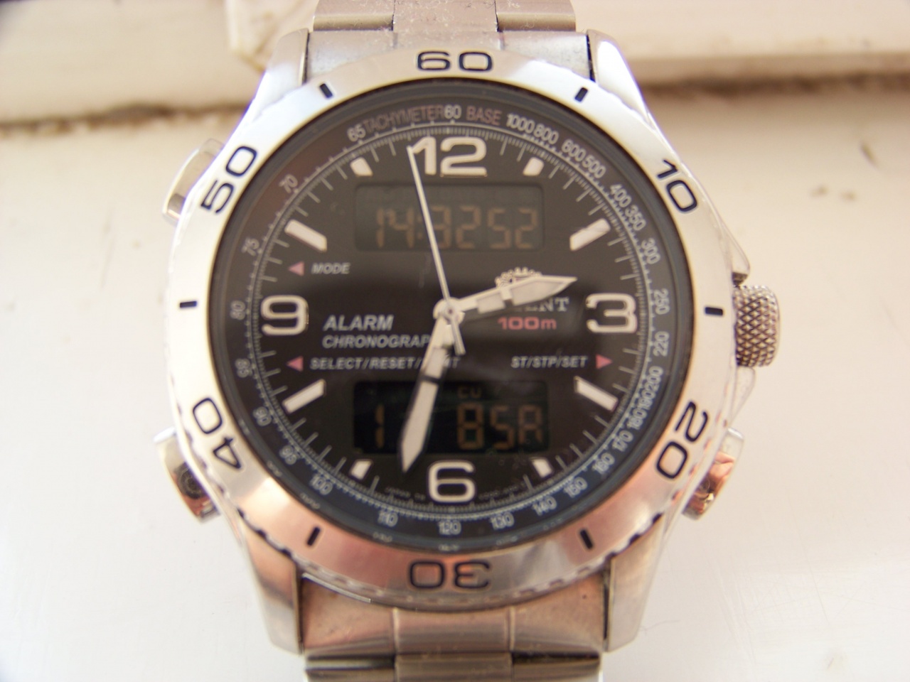 Orient CVZ03002W с белым циферблатом и тахиметрической шкалой на безеле. Ничего не рекламирую, просто информация для тех, кого, возможно, заинтересует достаточно старенькая и редкая уже модель. Часы новые. Что с батарейкой - не знаю, не спрашивал (хотя, часам уже порядочно лет, соответственно можно ожидать, что элемент питания либо сразу под замену, либо уже не родной, надо уточнять). Ценник специфический, для фанатов -