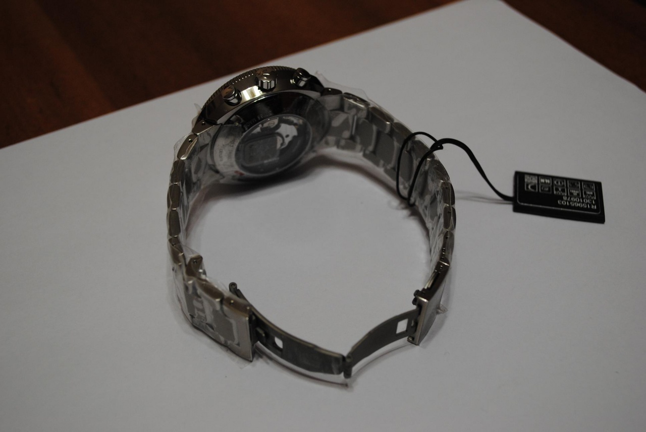 Поставляется на трехрядном браслете из нержавеющей стали с титановой тройной раскладной застежкой.