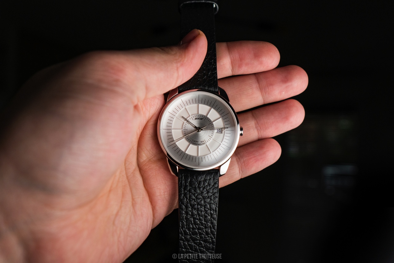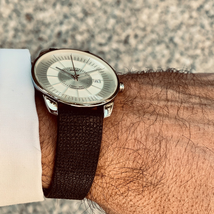Все ответы на вопросы есть на сайте автора (вторая ссылка). В инстаграме есть видео прототипа часов (в конечном экземпляре будут некоторые доработки). От себя скажу, что хотелось бы стрелки более осязаемые, а то они теряются на просторе циферблата. Обсуждал с автором, он сказал, что стрелки на продажной версии экземпляра часов будут более темные и матовые, да и сам циферблат будет с матовой отделкой, а не как сейчас глянцем отдавать. Что самое приятное, при таком размере часов, они прекрасно выглядят на маленькой руке (у автора на фотографиях объем руки 17-17,5.)