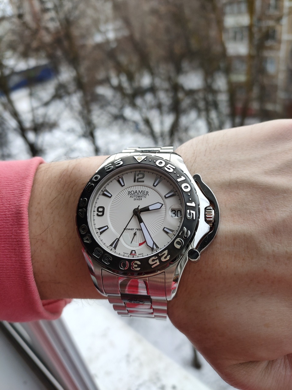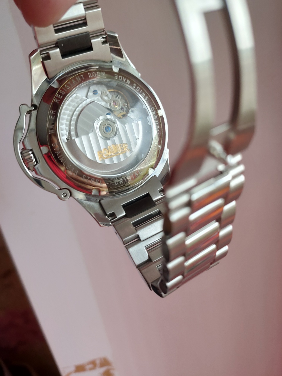 Roamer Mustang D+D в великолепном "безухом" 303-ем корпусе, на оригинальном браслете, производства швейцарского производителя NSA. Механизм комплектен, не идут часовая и минутная стрелки, чему причиной, скорее всего, центральное колесо с пушечной шестернёй - которое у меня есть, циферблат поцарапан, но в том месте, где это можно закрыть массивным квадратиком шкалы, квадратные синие стразы (сапфиры?) частично утеряны, но на то и нужны продавцы страз с Алиэкспресс. Заводные головки соответствующего размера у меня есть. Заводной вал для ЕТА тех времен (а MST 478 это ETA 2638) найти не проблема.