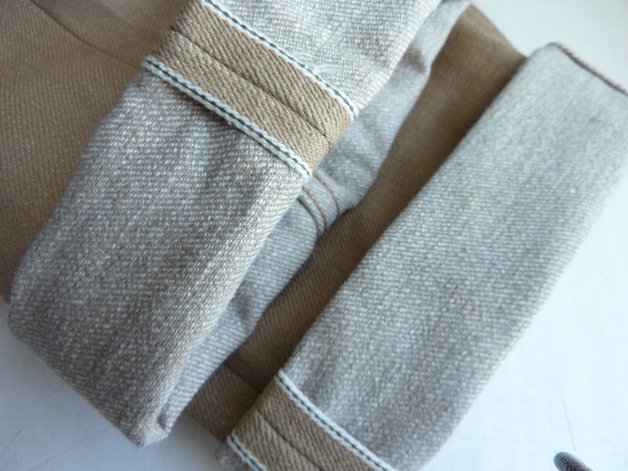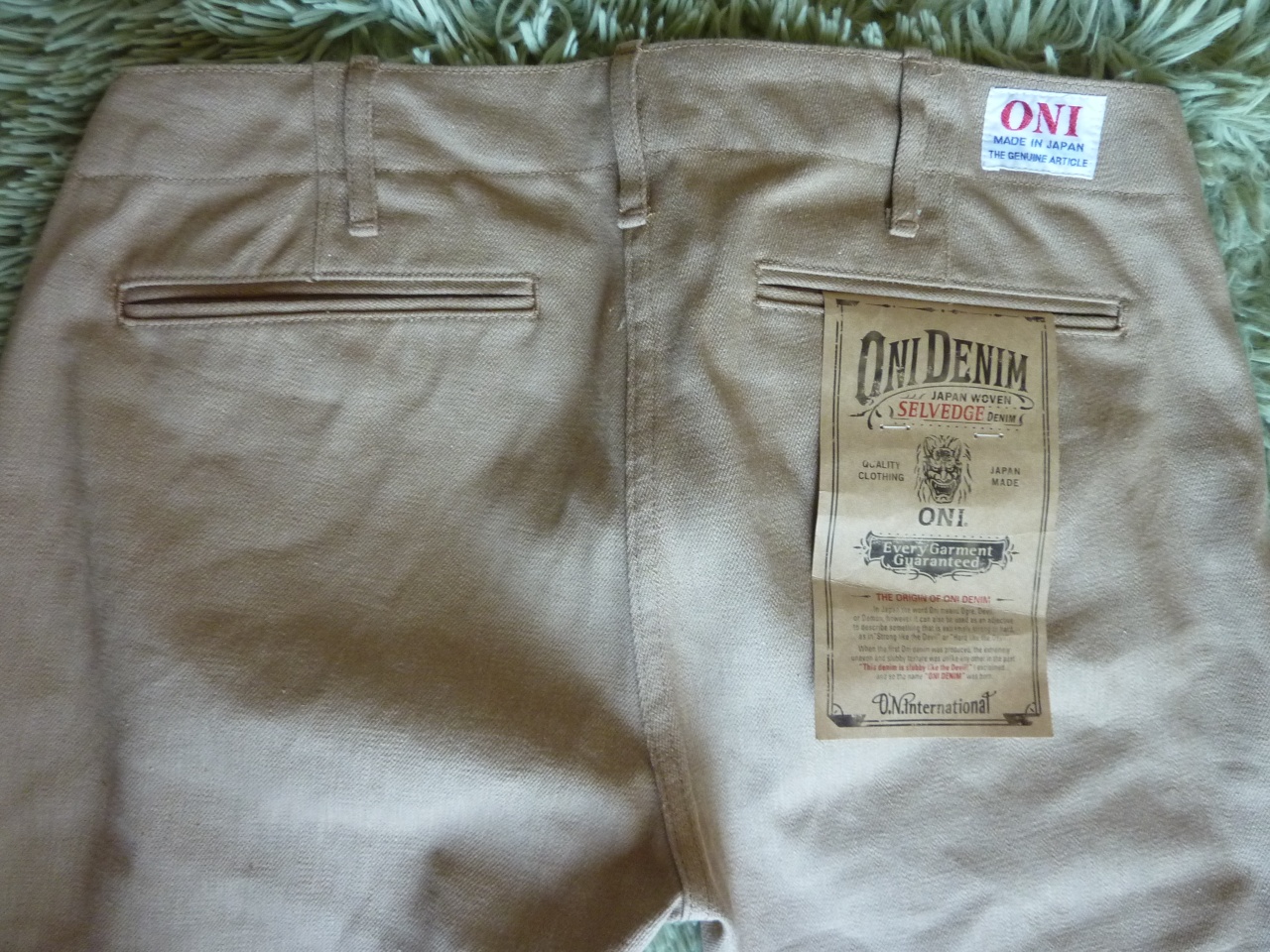 ONI DENIM ONI-757KHAKIBEIGE 11.9OZ SELVEDGE KHAKI BEIGE DENIM RELAX TAPERED TROUSERS